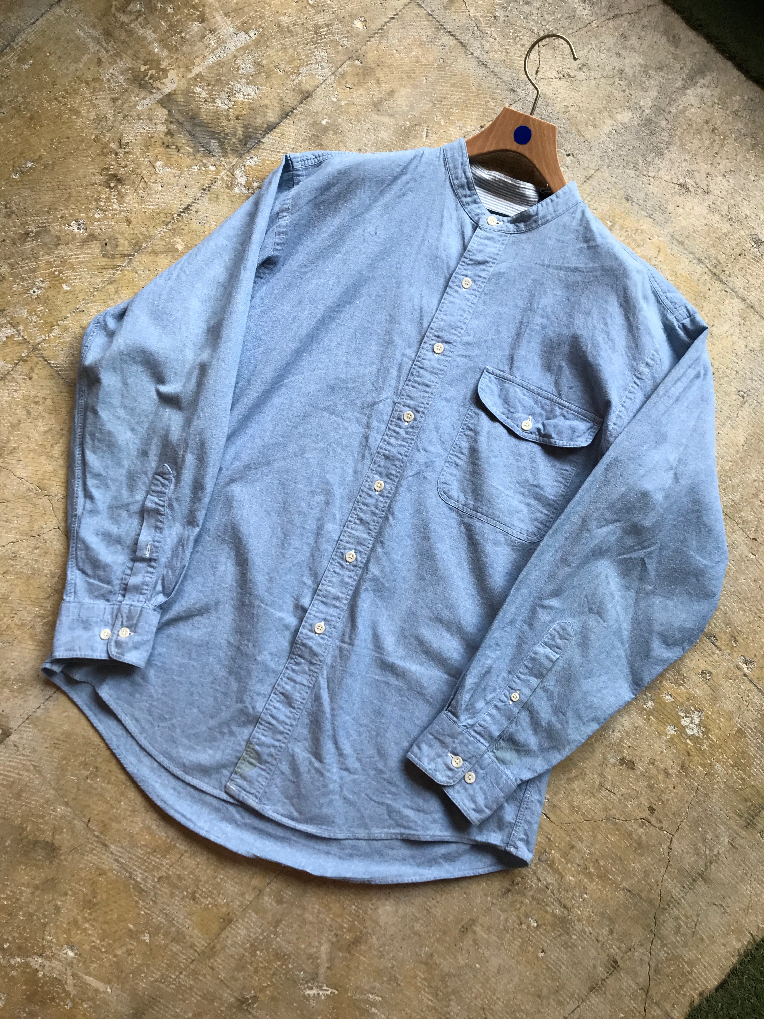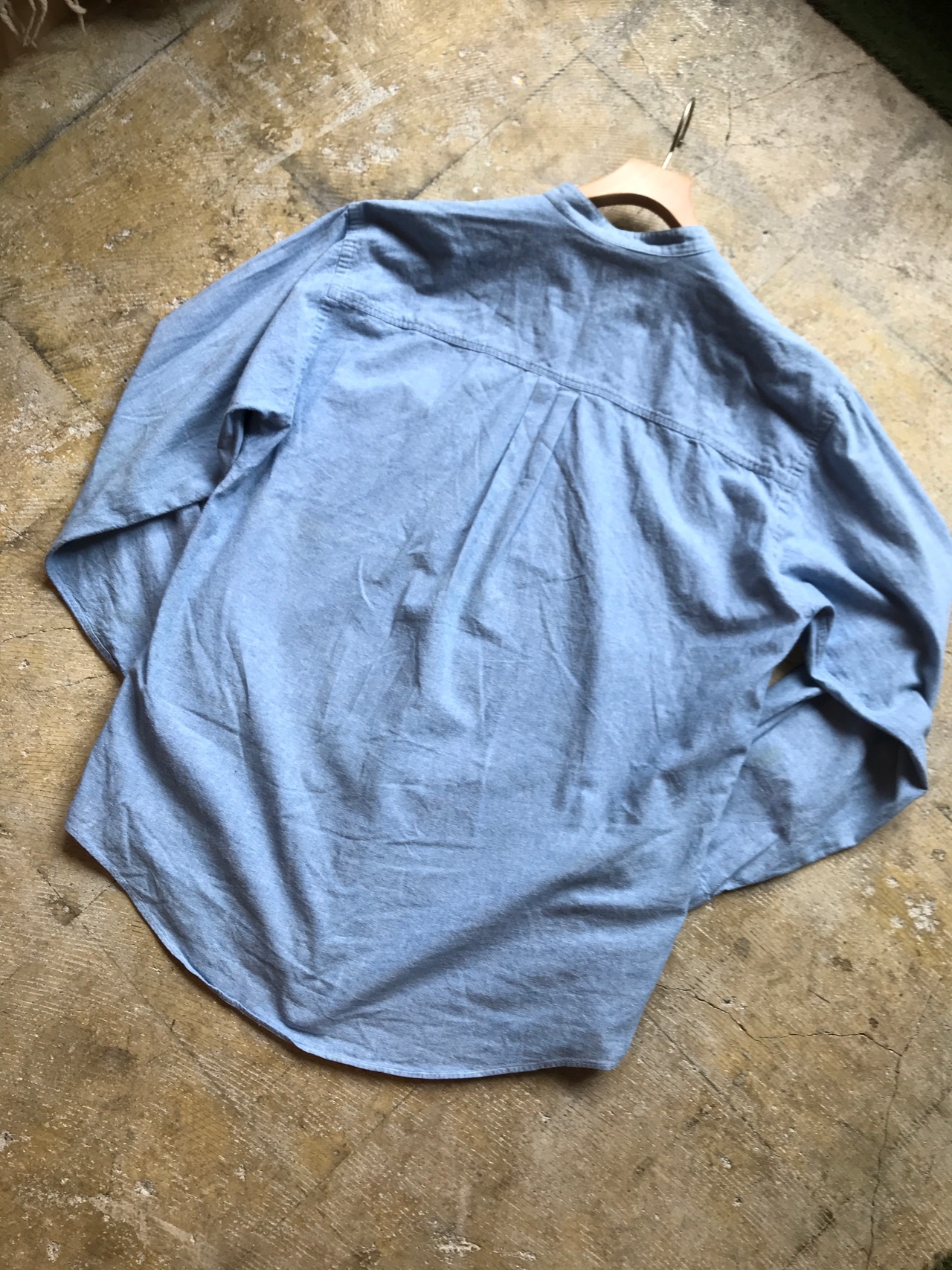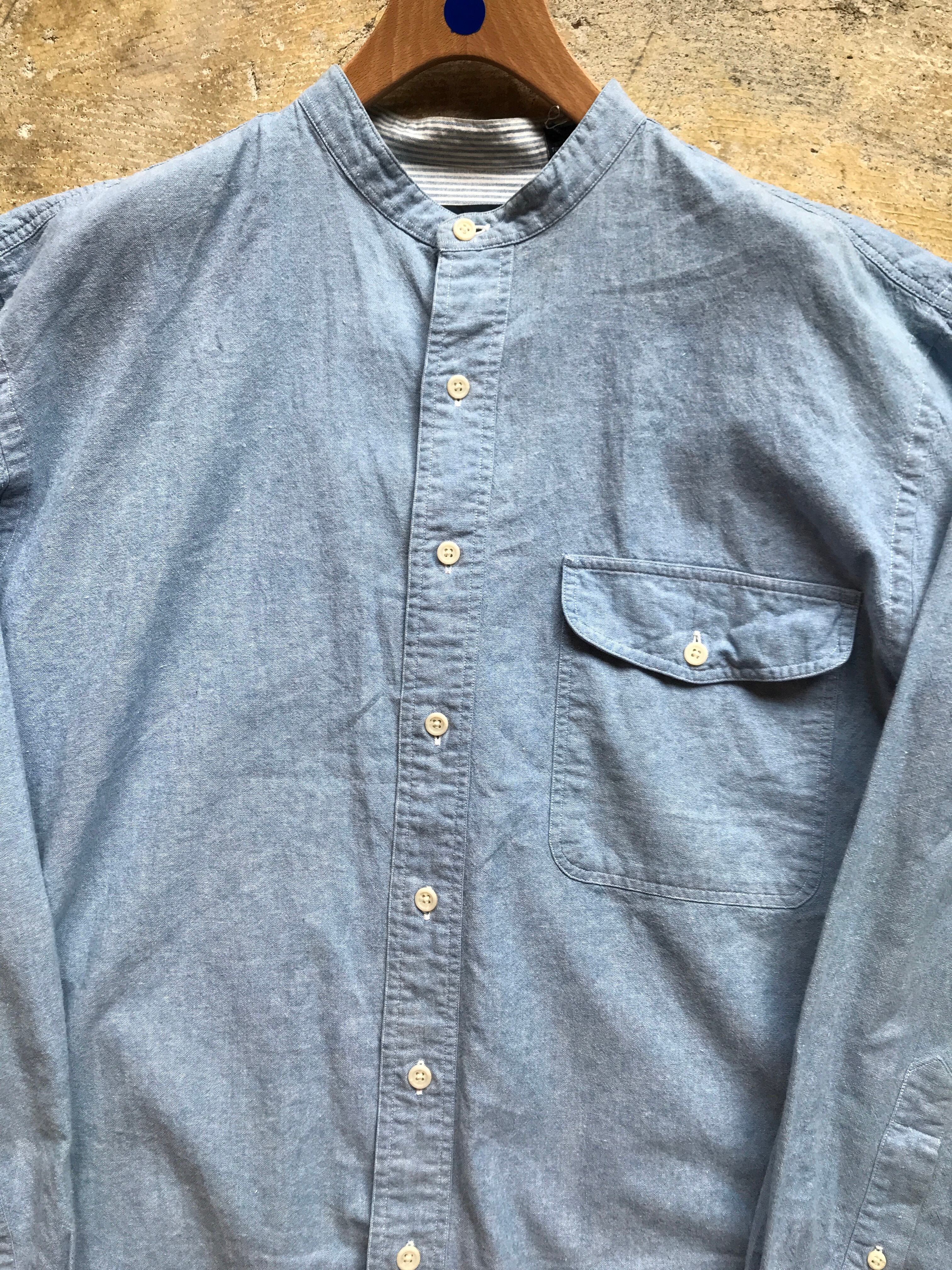 ランズエンドのシャンブレーのバンドカラーシャツです。