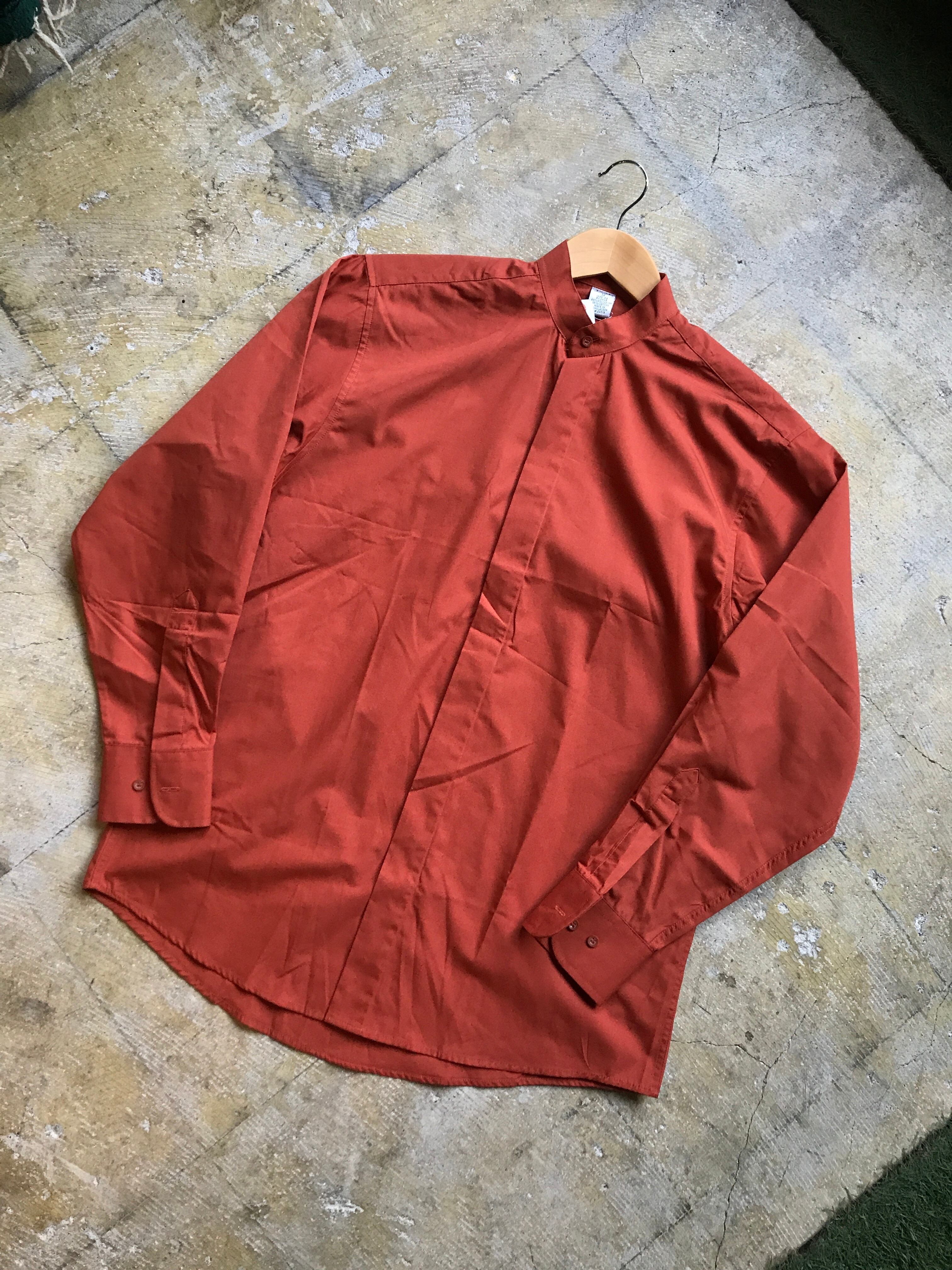 綺麗なオレンジのアメリカのバンドカラーシャツです。
