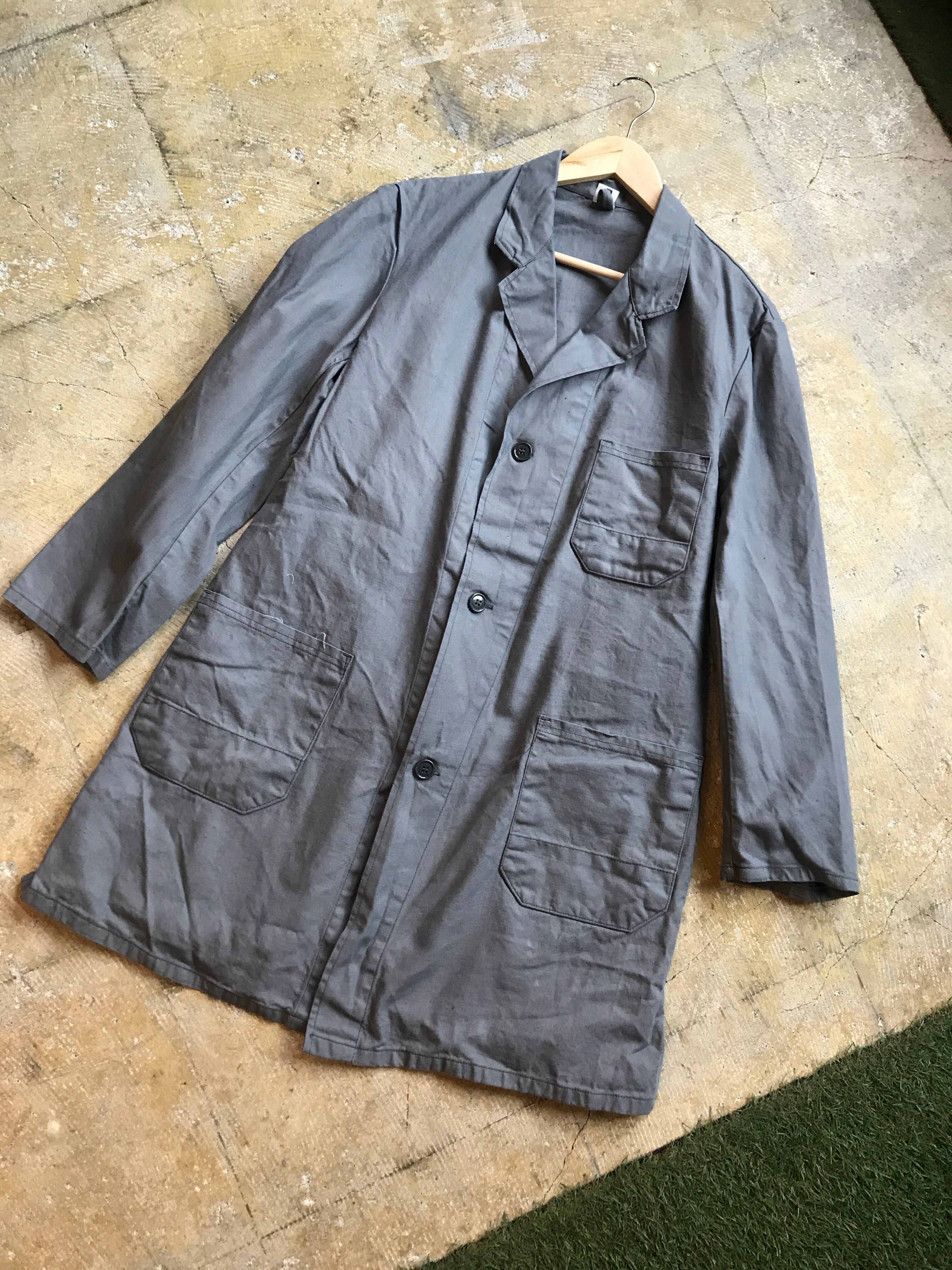 ドイツのレアカラーのグレーのワークコートです。こちらは男女どちらのお客様にオススメです。ワークコートは裏地がない分さらっと羽織れてこの時期にとてもオススメですよ。また着ただけで雰囲気も出るのもいいですね。是非。