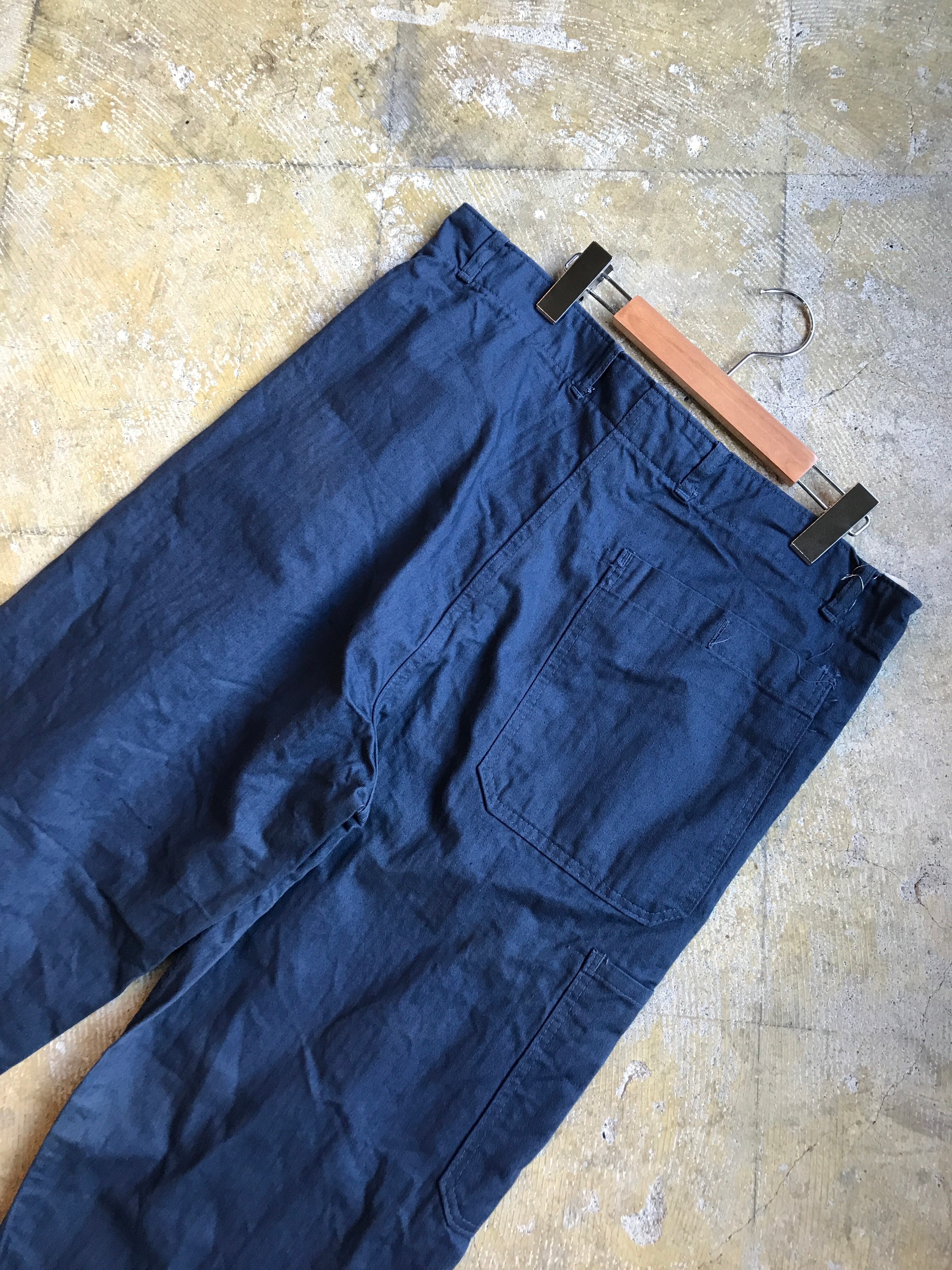 ヨーロッパのワークパンツです。こちらは青藍といえばいいのでしょうか…間違いなくあまり見ないカラーです。ヨーロッパ特有のインクブルーとも違う素敵なカラーです。ドイツ物のデットストックでのご準備です。古着ではこういうモダンなカラーはオーラがありますね。ぜひ。