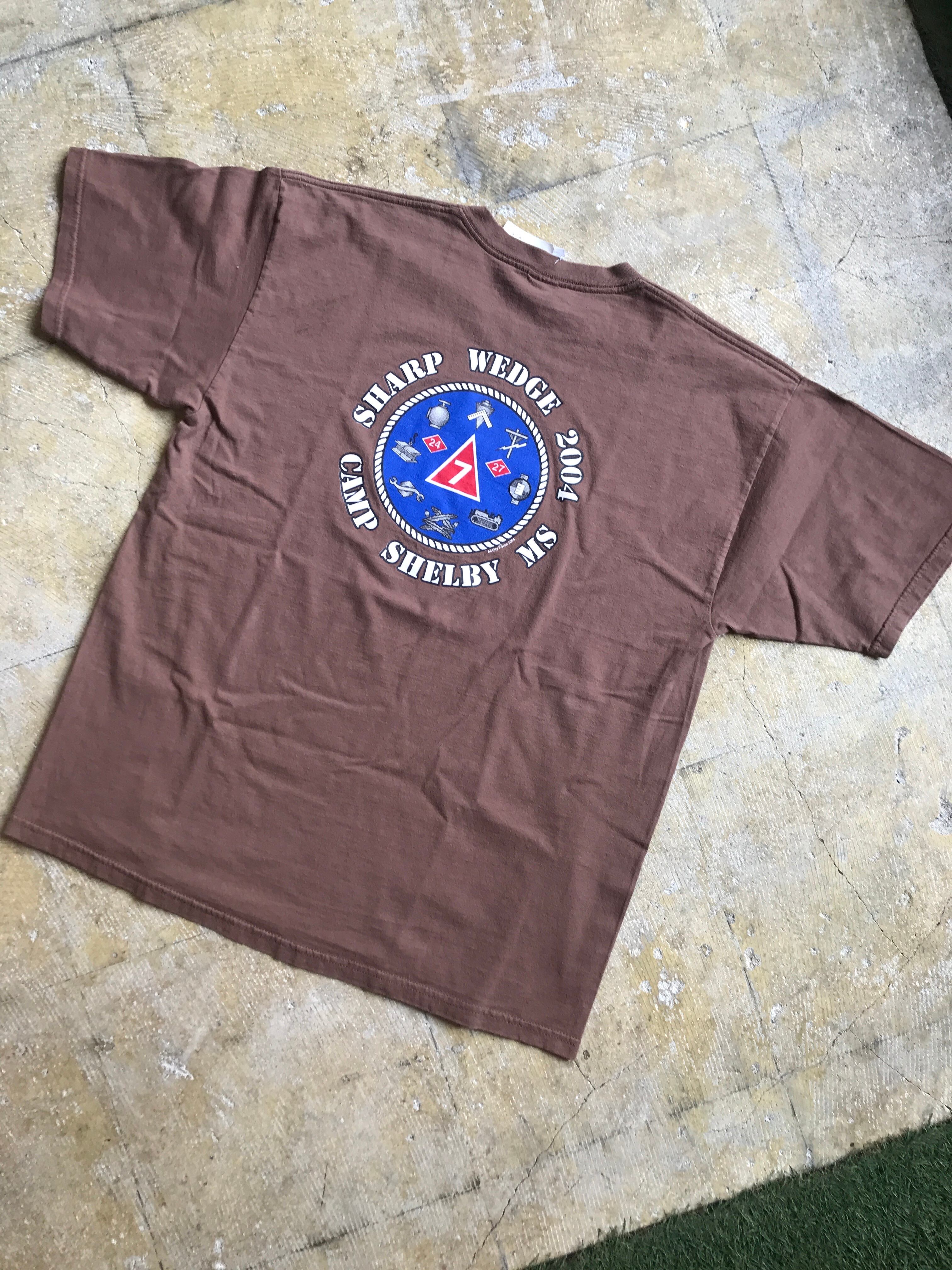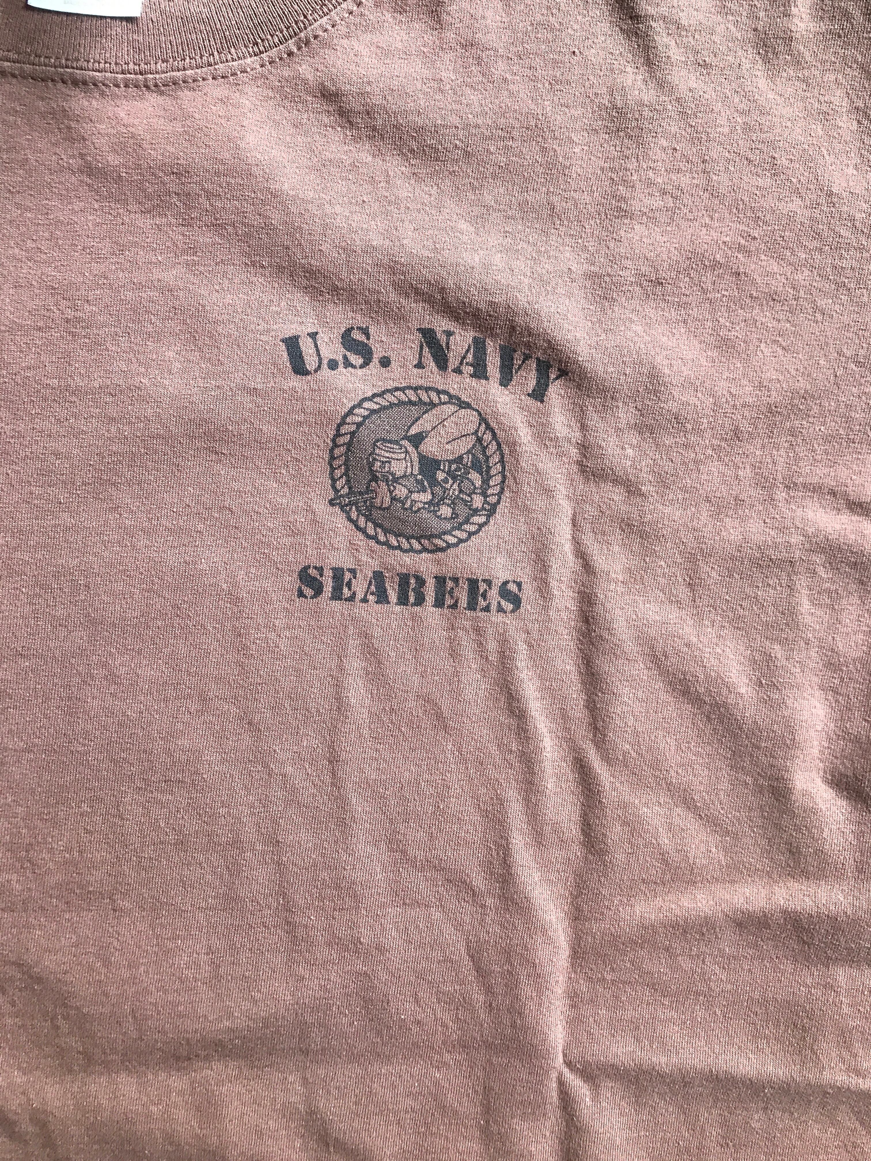 アメリカのシービーズのTシャツです。ミシシッピ州にある駐屯所のTシャツです。バックプリントも素敵ですよね。ブラウンボディですので合わせもしやすいですよ。純粋にかっこいいと思います。ぜひ。