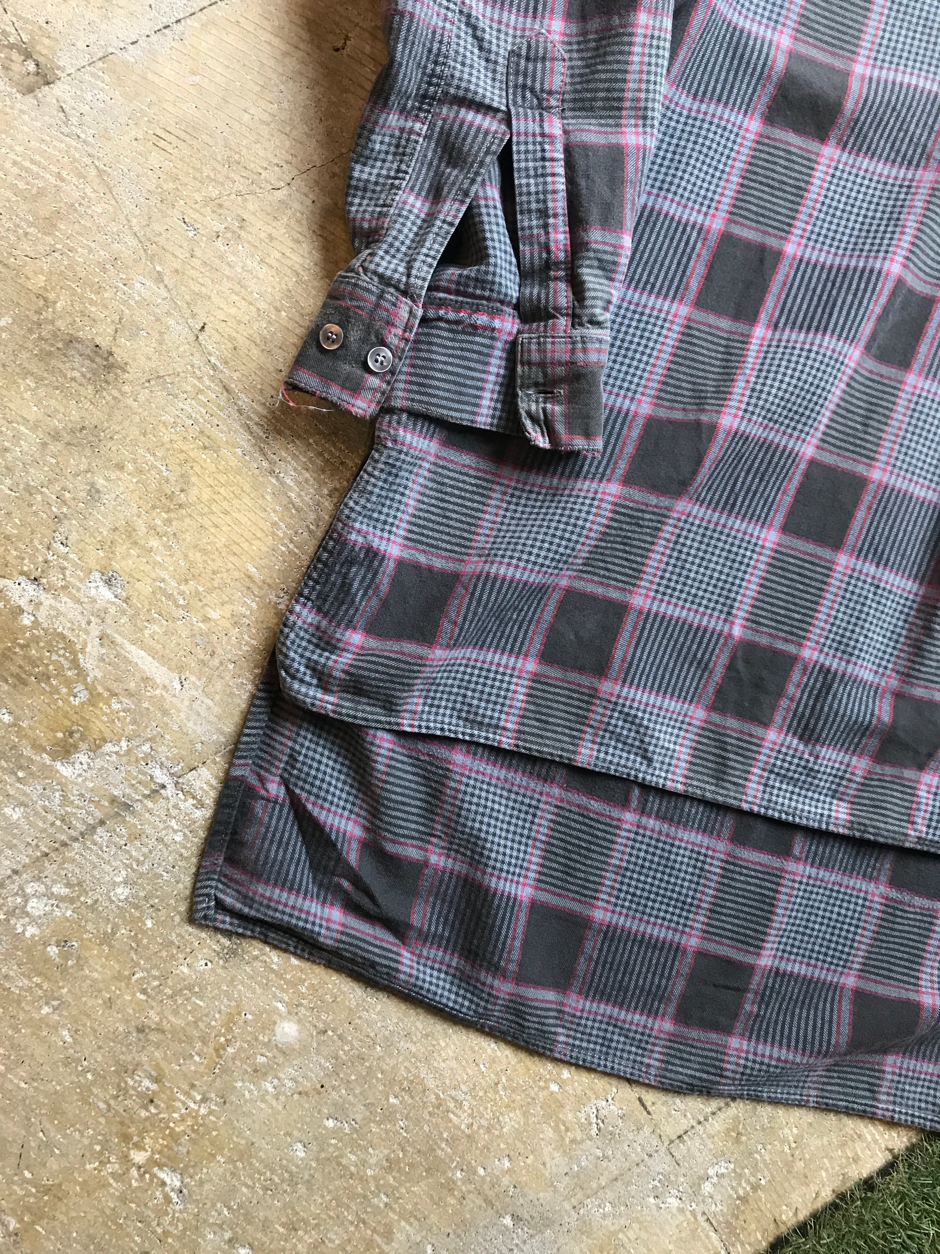 フランスのルラブルールのグランドファザーシャツです。古着らしい着込まれた生地に素敵なチェックですよ。前と後ろで着丈が違うのでレイヤードにも最適です。ぜひ。