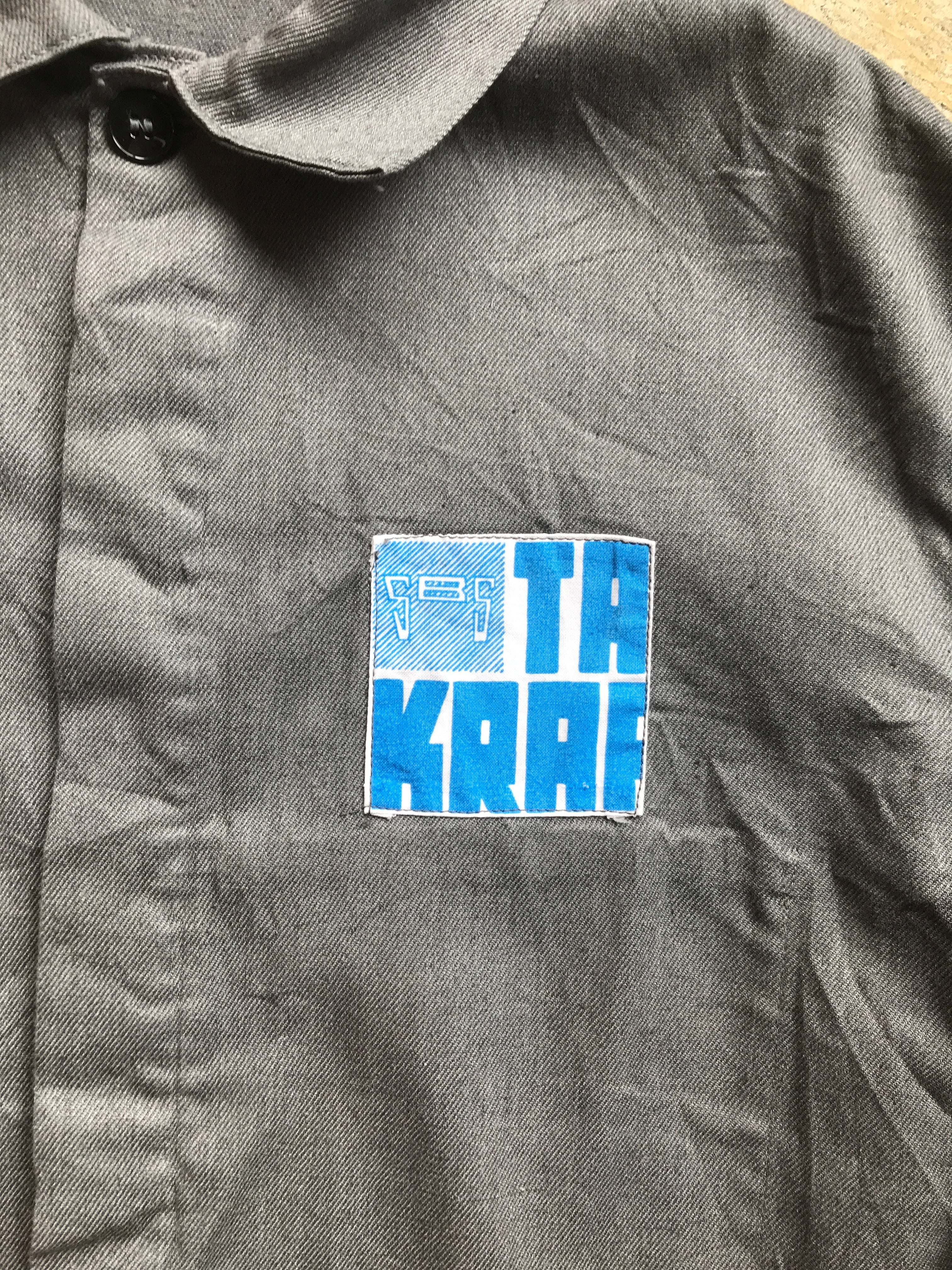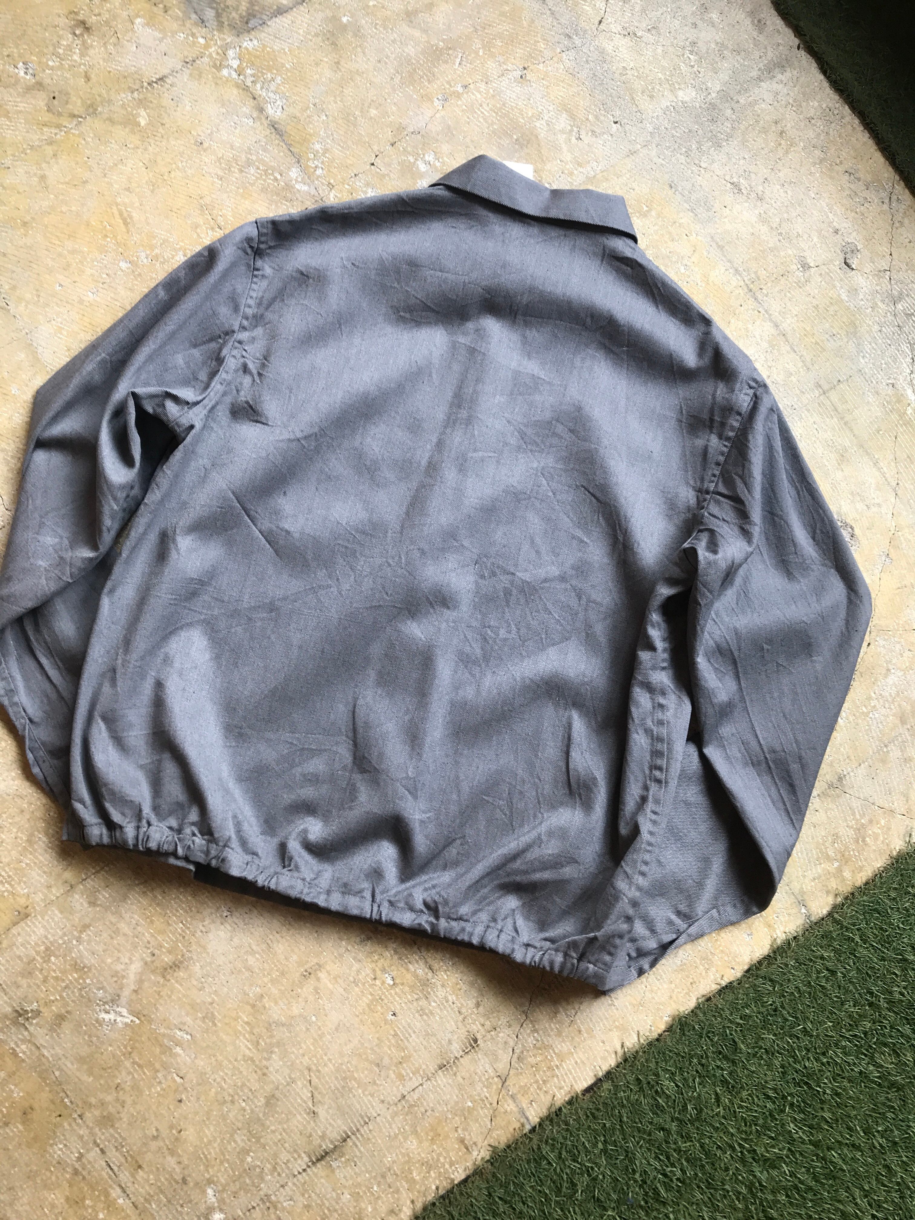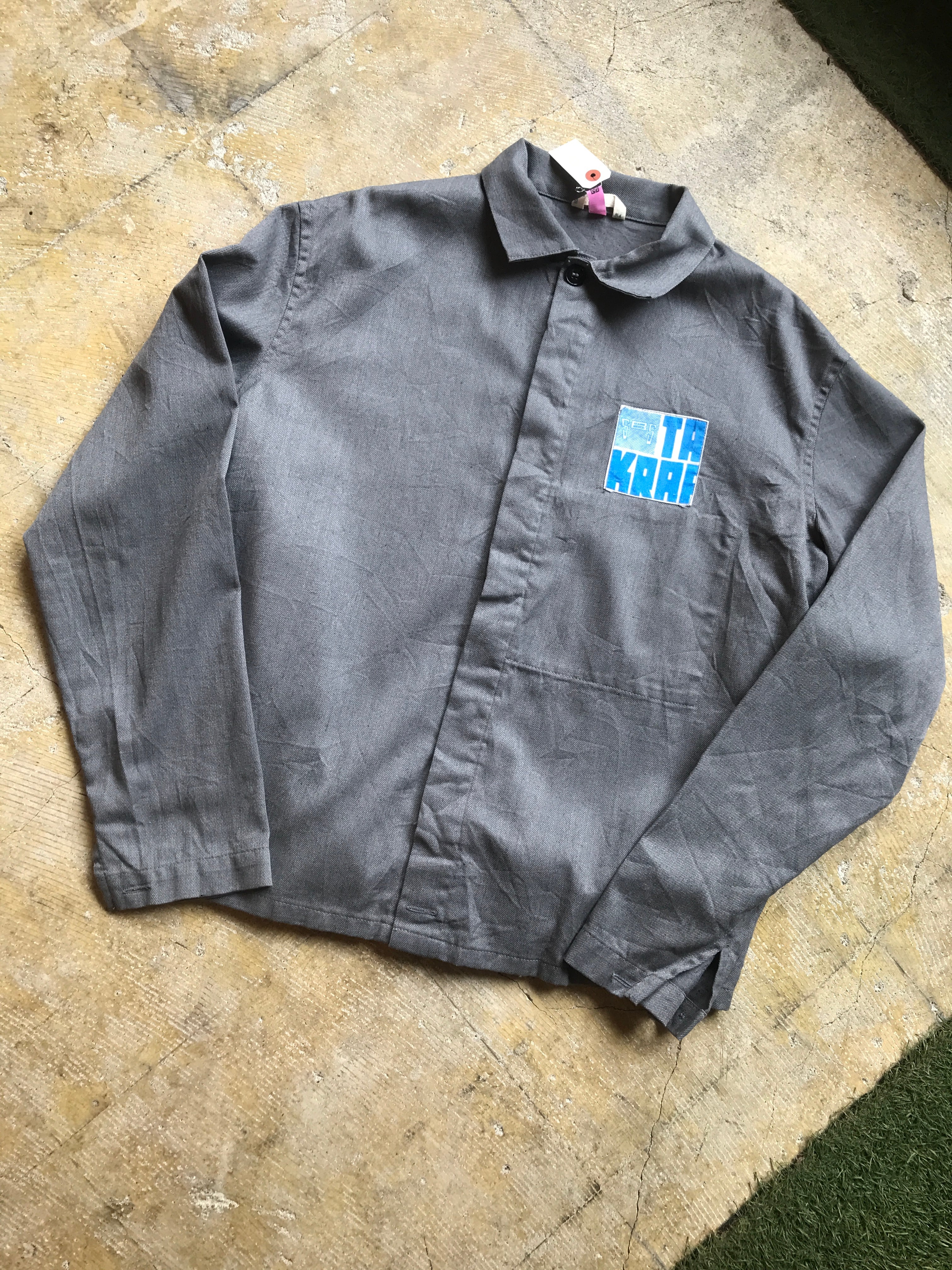 ドイツのワークジャケットです。薄いシャツ生地の素材は今時期でも着れますよ。胸のワンポイントがアクセントになってカッコいいですね。グレーのカラーもレアです。是非。