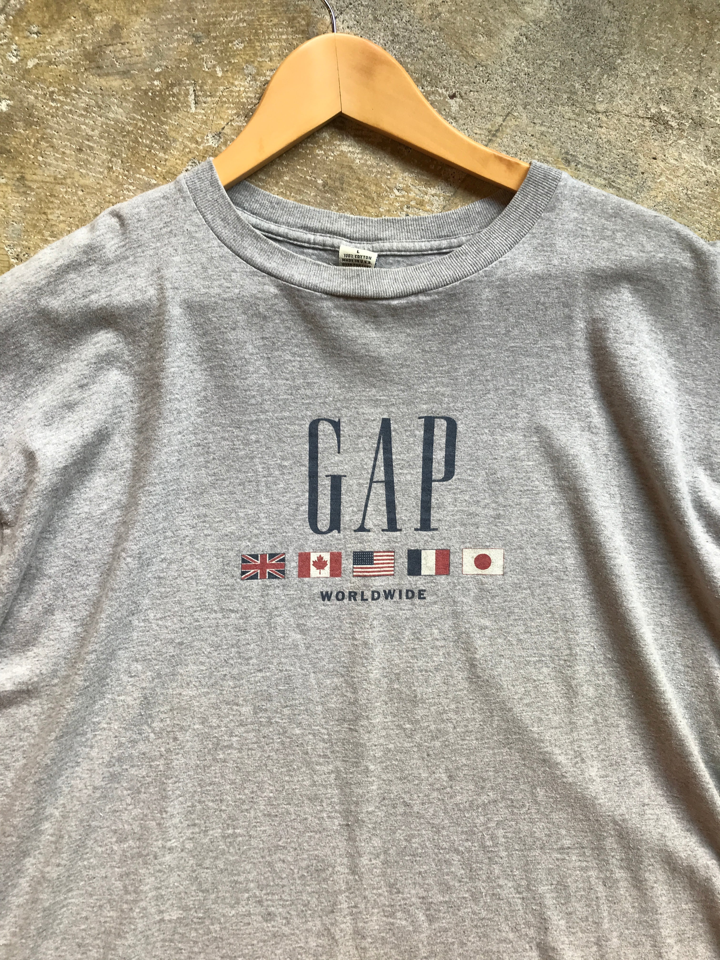 オールドギャップのプリントTシャツです。5カ国の国旗にギャップのプリントがシンプルでいいですね。アメリカ製というところも嬉しいです。ぜひ。