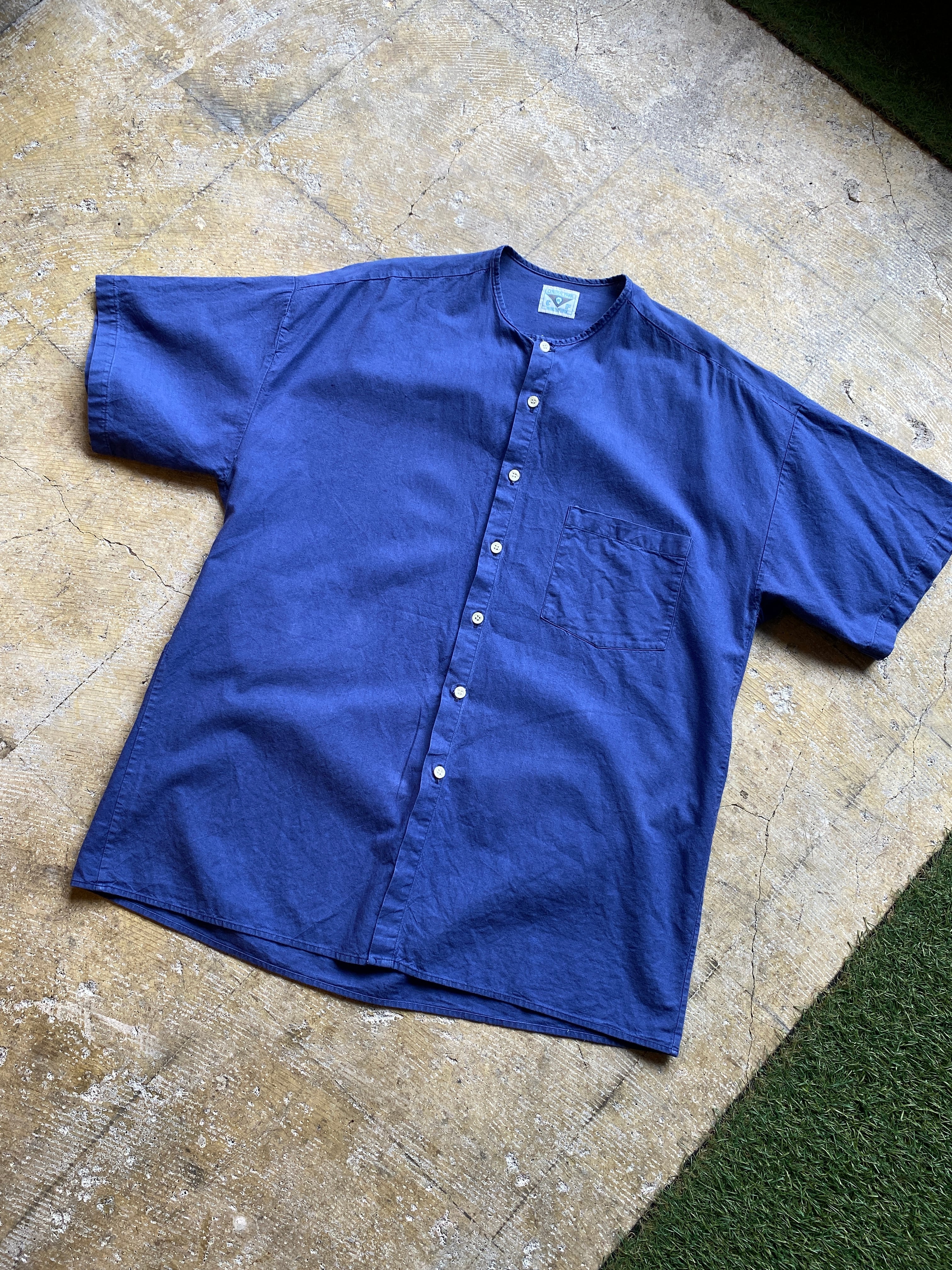 ヨーロッパのデザインシャツです。ノーカラーの襟にリネンのようなコットンが素敵ですよ。小ぶりなボタンにフランス製というところも見逃せません。お好きな方ぜひ。