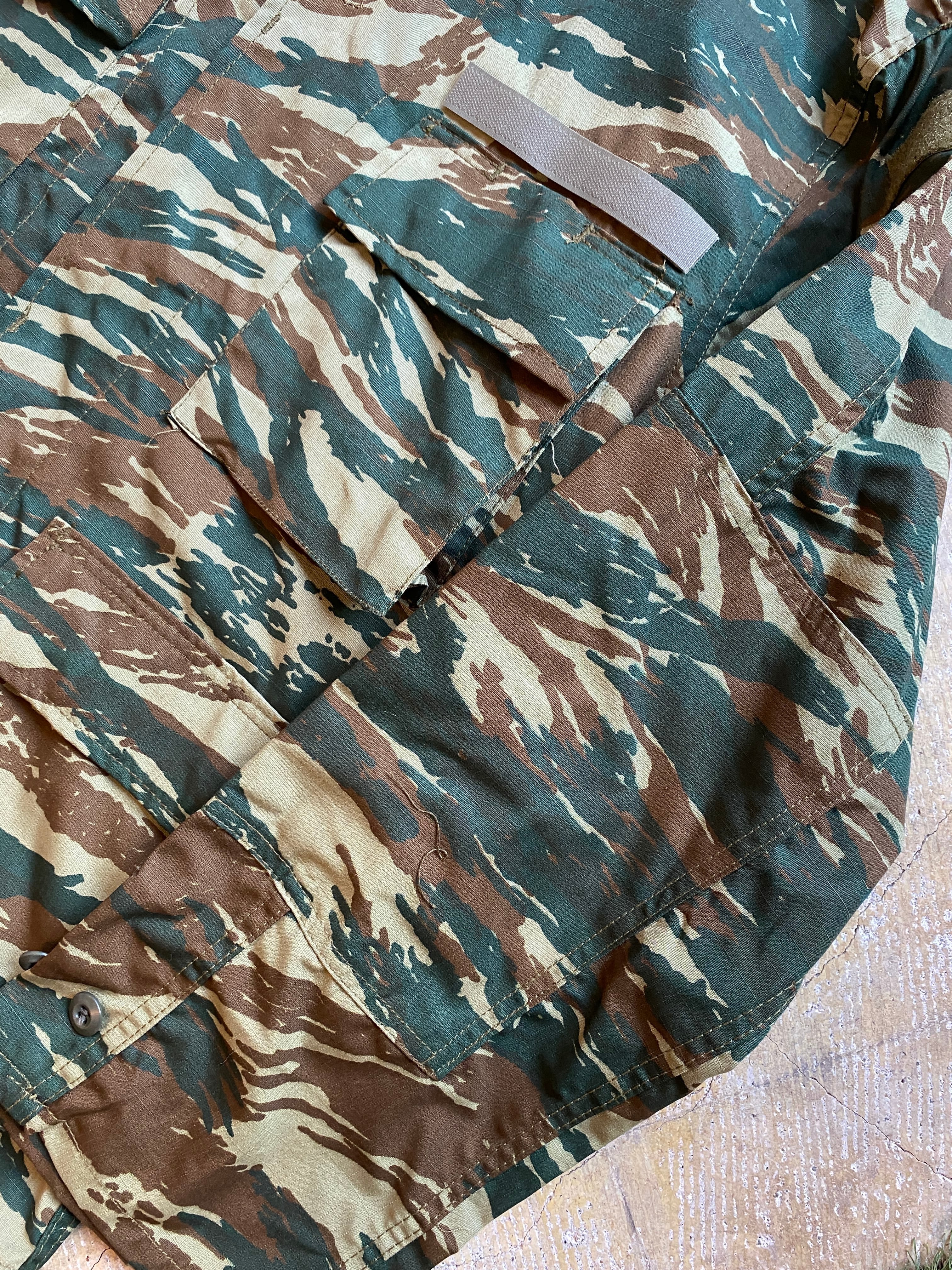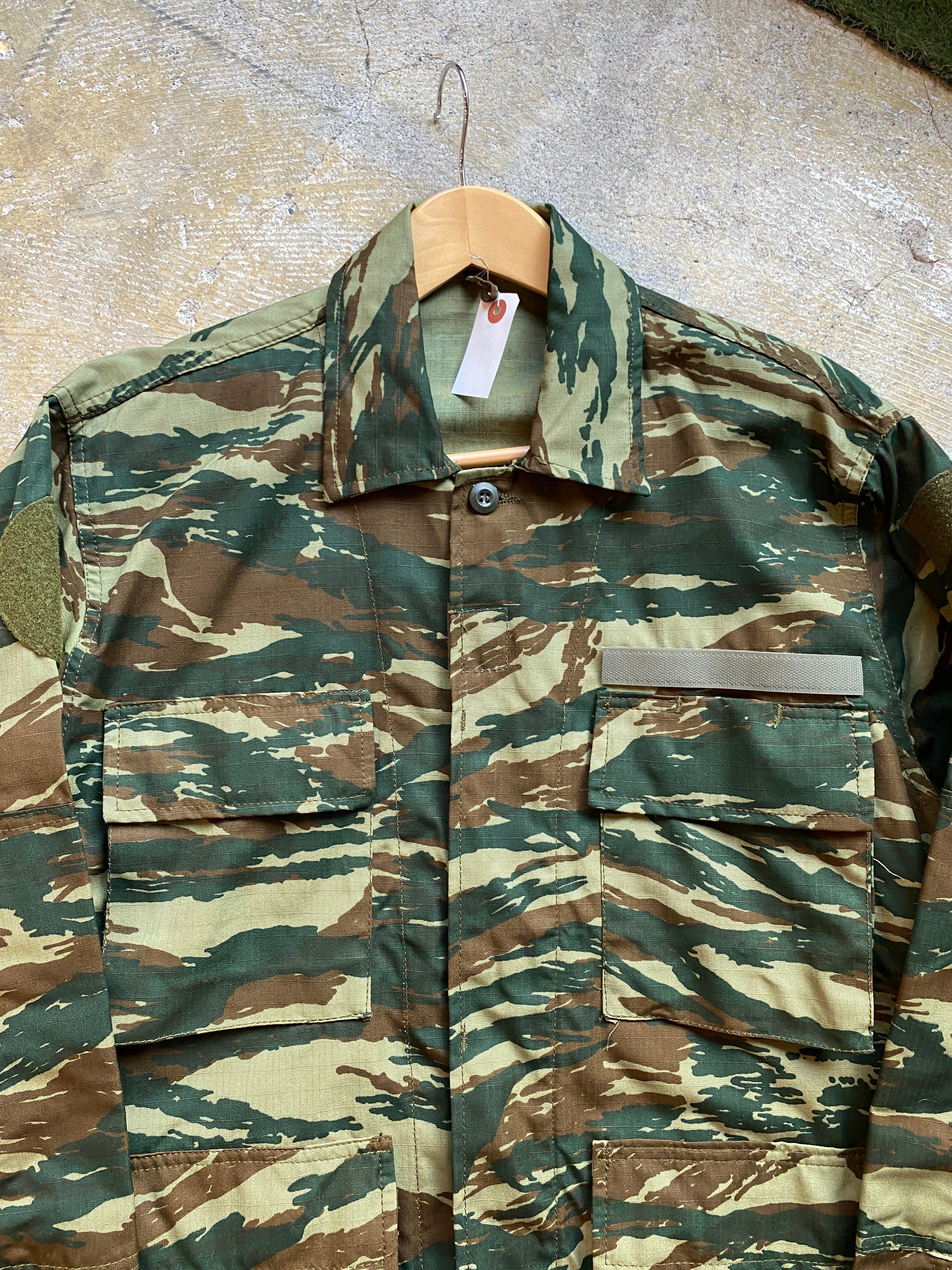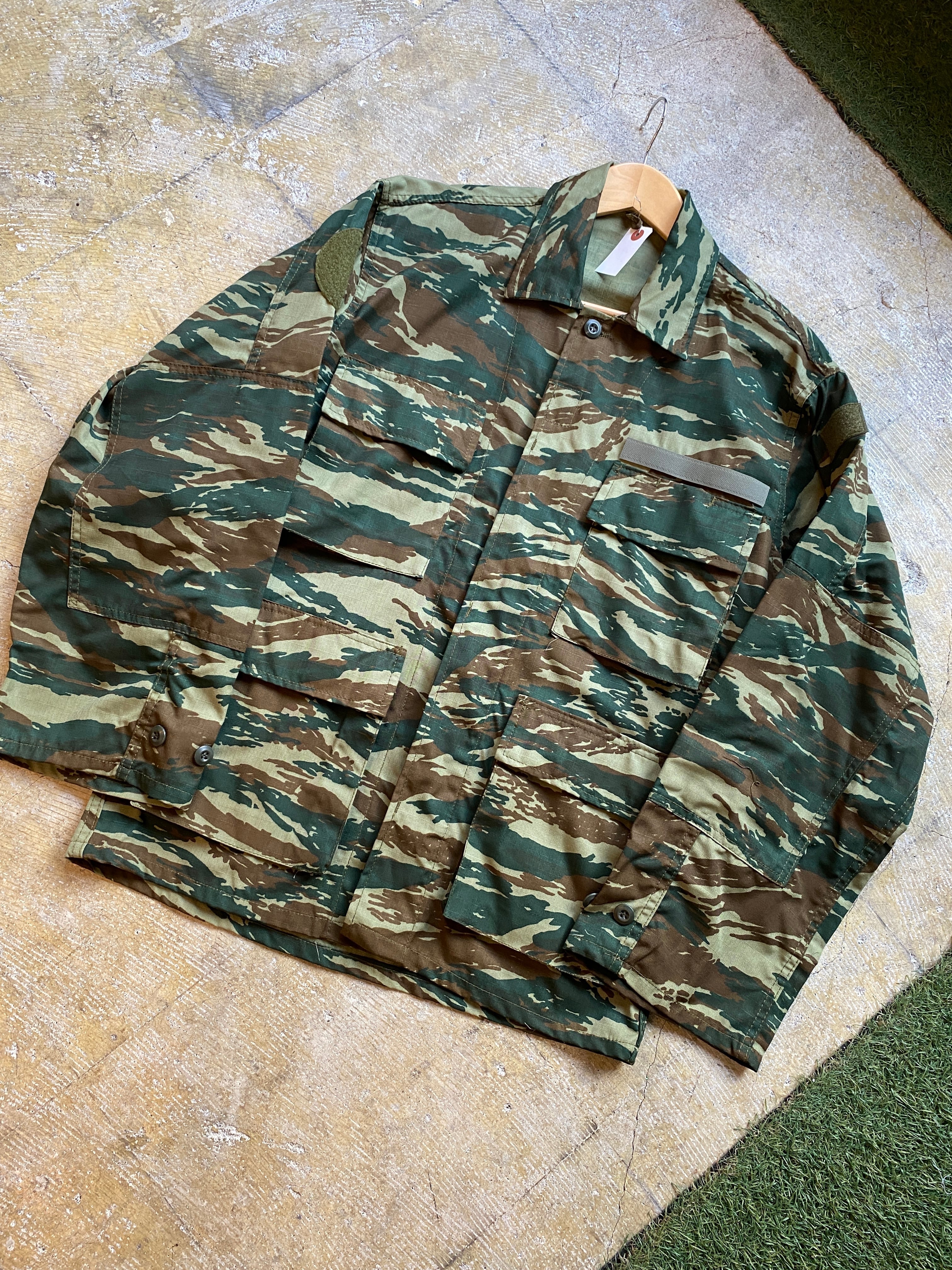 ギリシャ軍のカモジャケットです。コットンポリエステルのしゃりっとした生地に凝ったディティールが堪りませんよ。フランス軍のリザードカモにも似ていますね。お好きな方ぜひ。