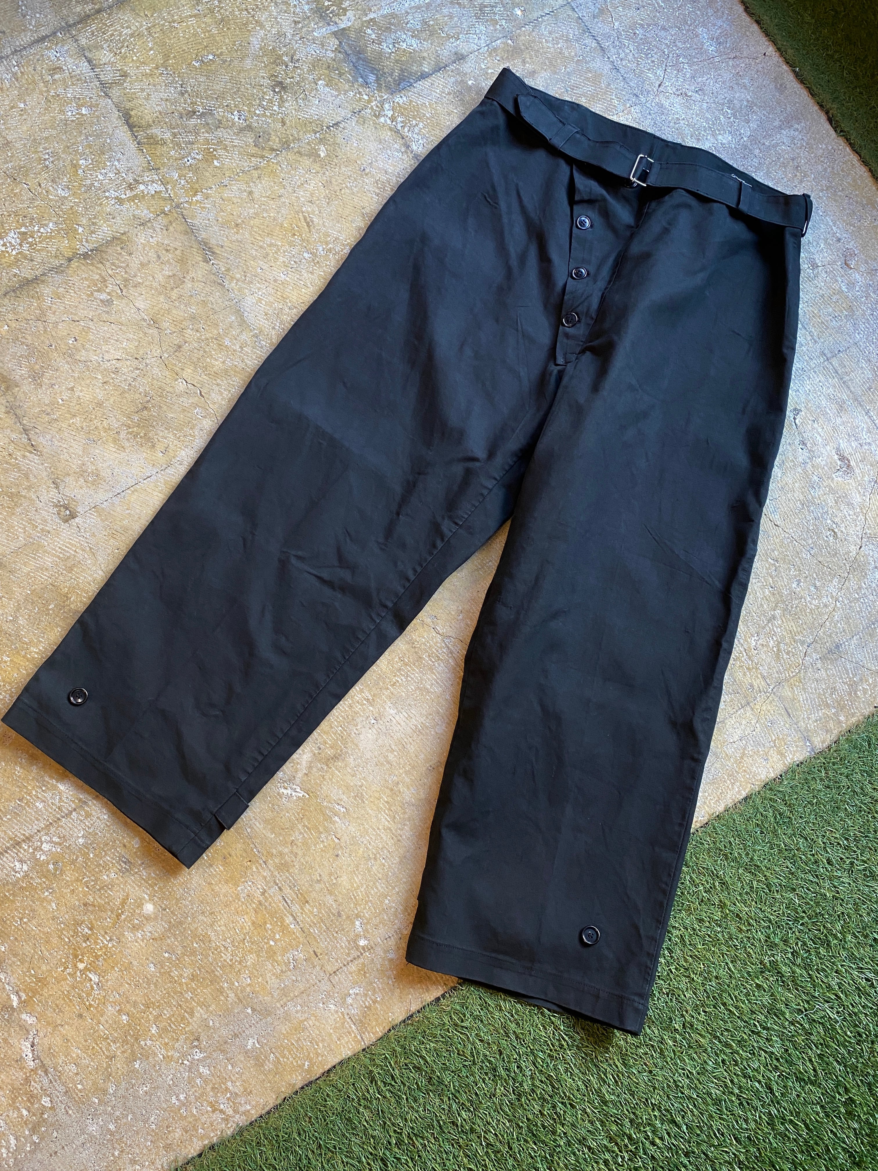イタリア軍のモーターサイクルパンツの黒染めです。完成されたデザインと黒染めによりかなりモダンな仕上がりになっていますよ。生地もマッキンほど硬くないのもいいですね。ブランド好きな方にもオススメです。是非。