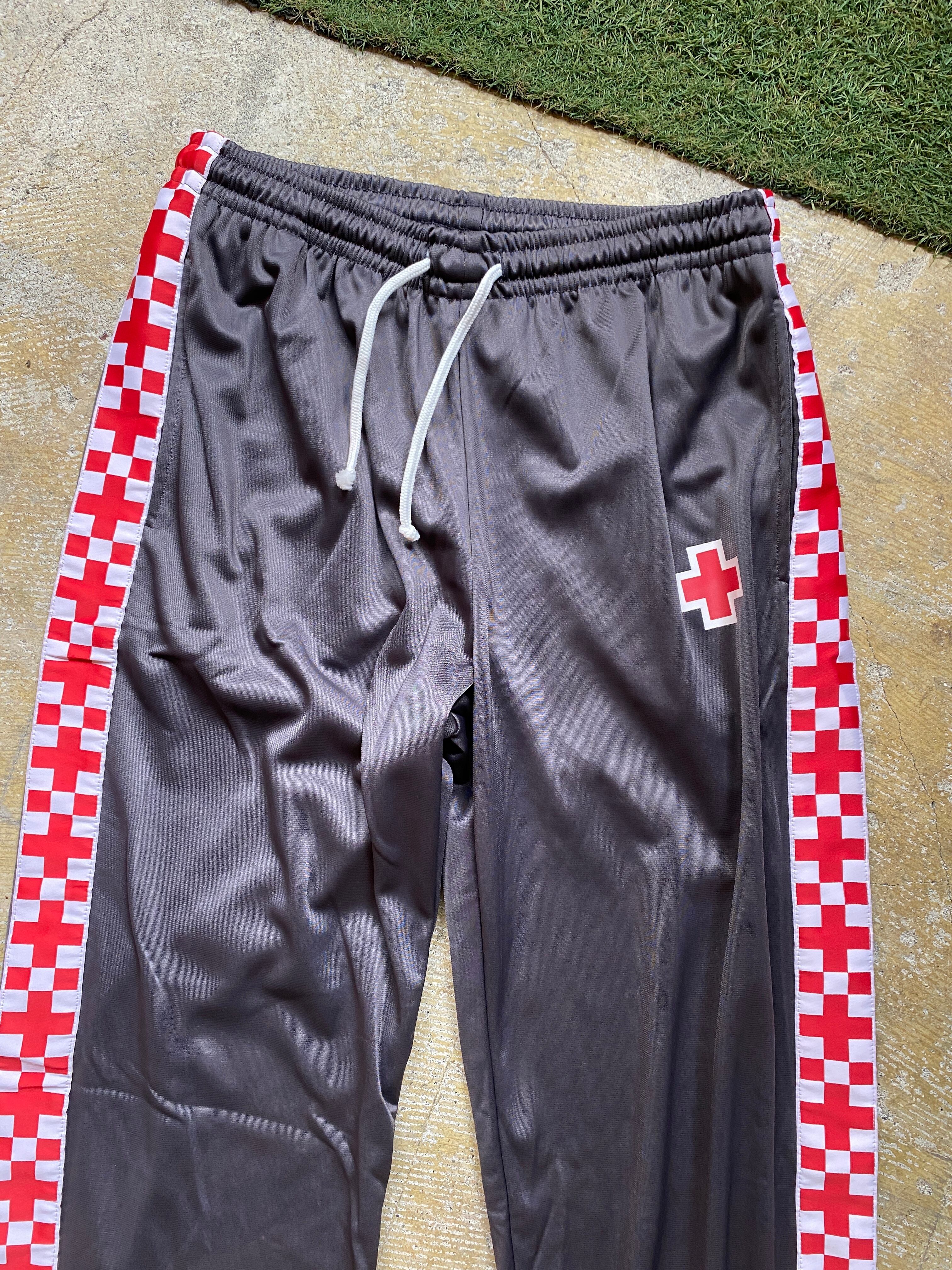 スペインの赤十字のトレーニングパンツです。独特なデザインにモダンなグレーのカラーが素敵ですよ。裾がジップでシルエットが変えられるのもいいですね。是非。