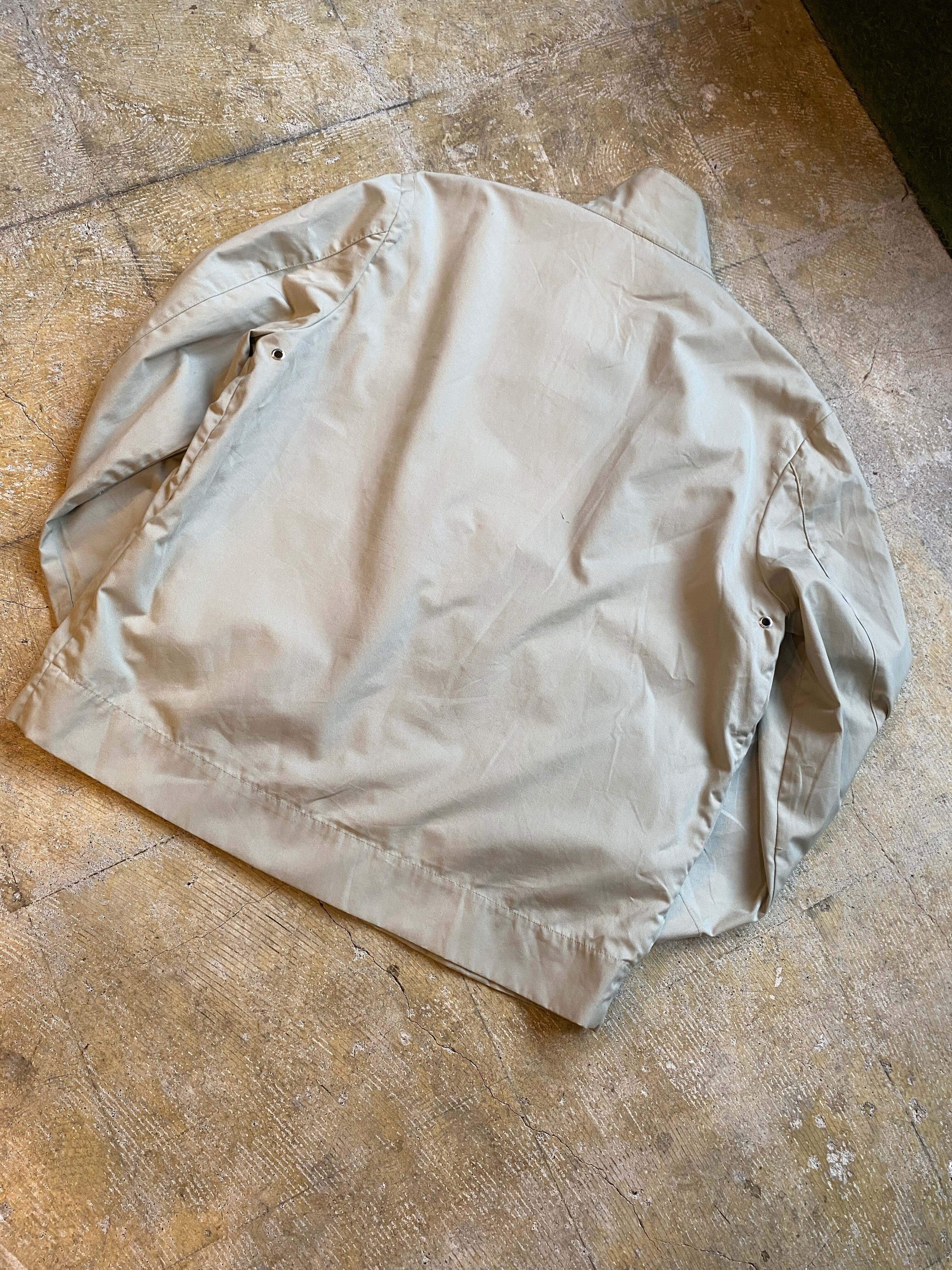 ユーロリーバイスのスタプレジャケットです。カラーはホワイト系でデザインがモダンで素敵ですね。生地も柔らかい生地なのでドレープ感もあります。XL表記ですがそこまで大きくないですよ。是非。
