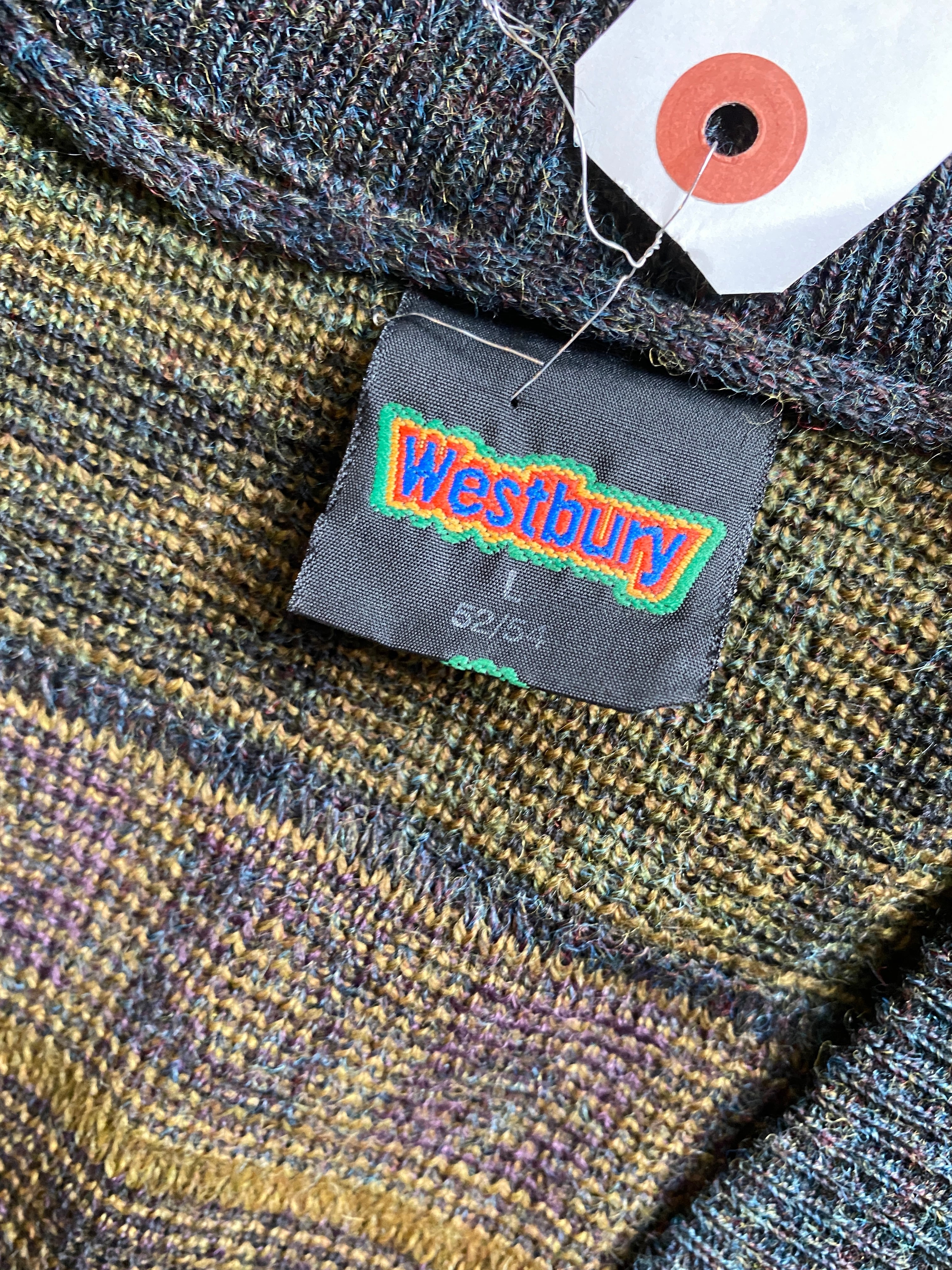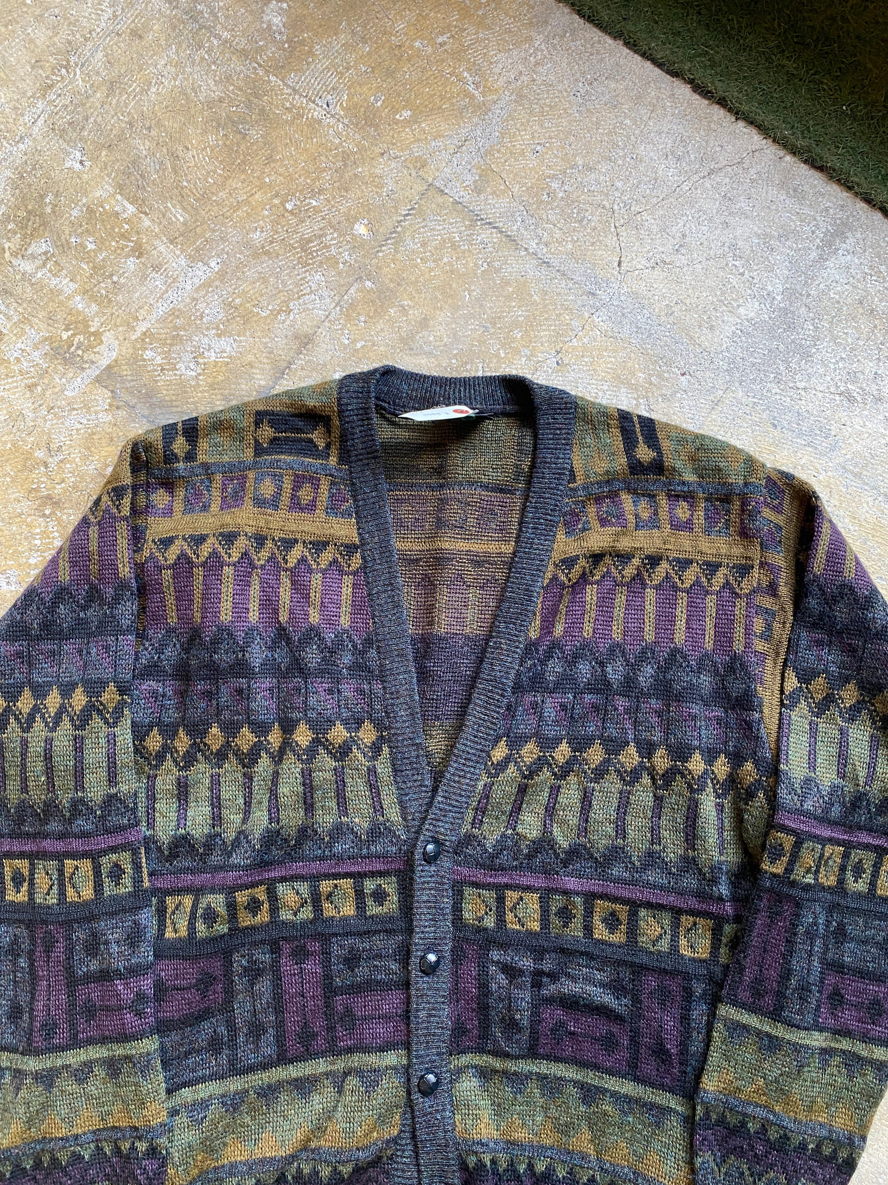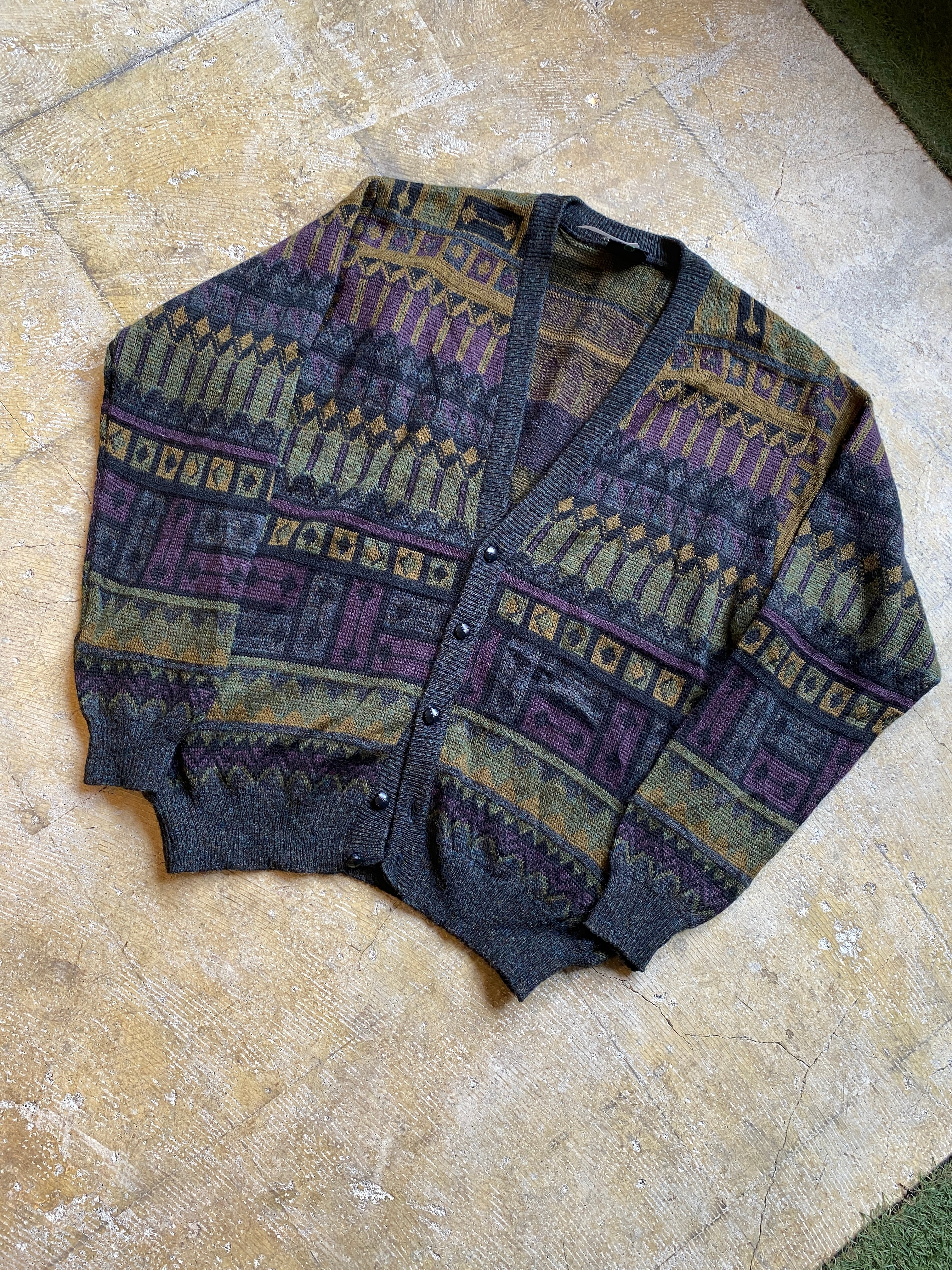 ヨーロッパのデザインニットです。独特な柄のデザインにゆるっとしたシルエットがたまりませんよ。1枚で決まるニットですね。是非。