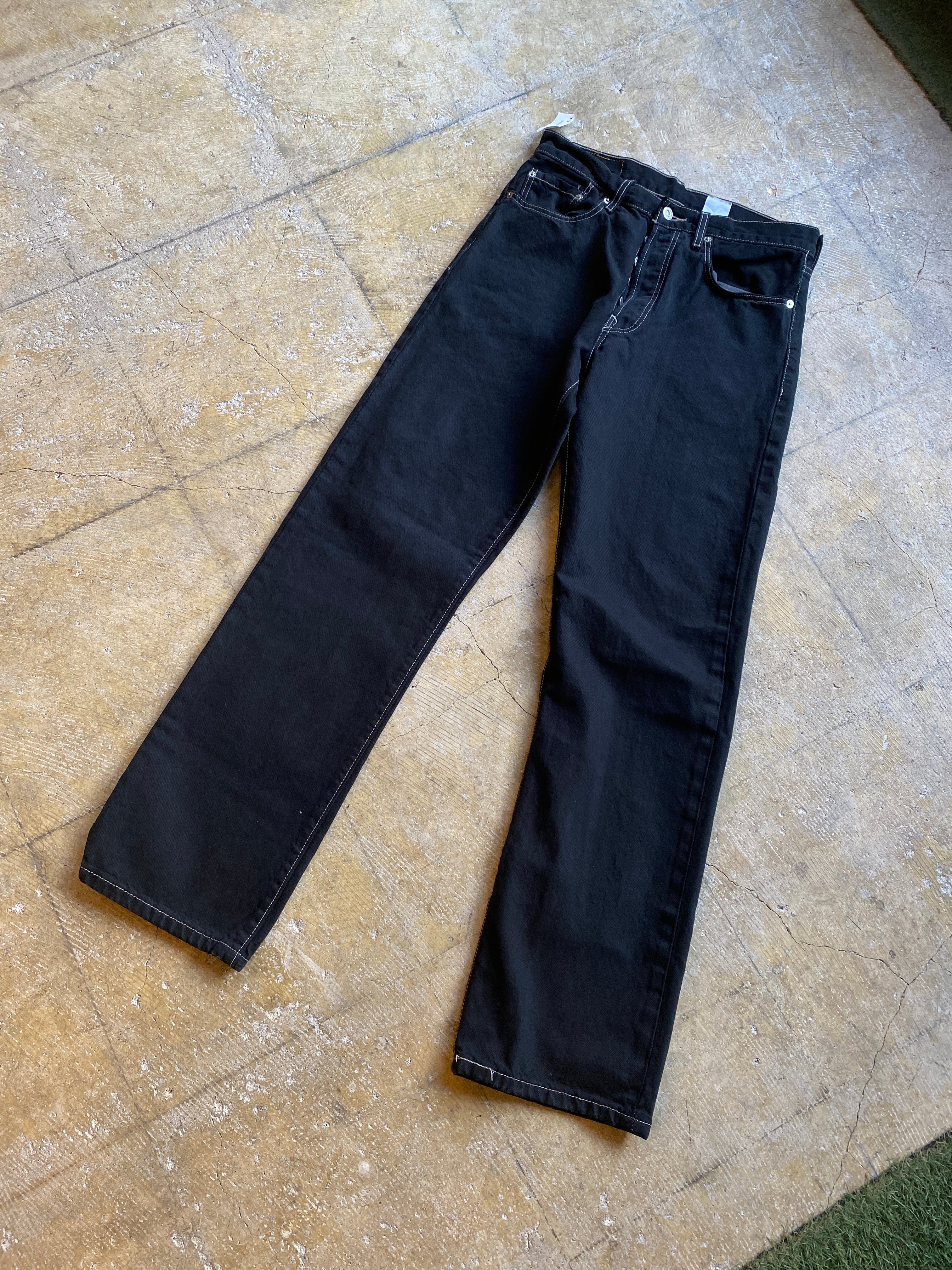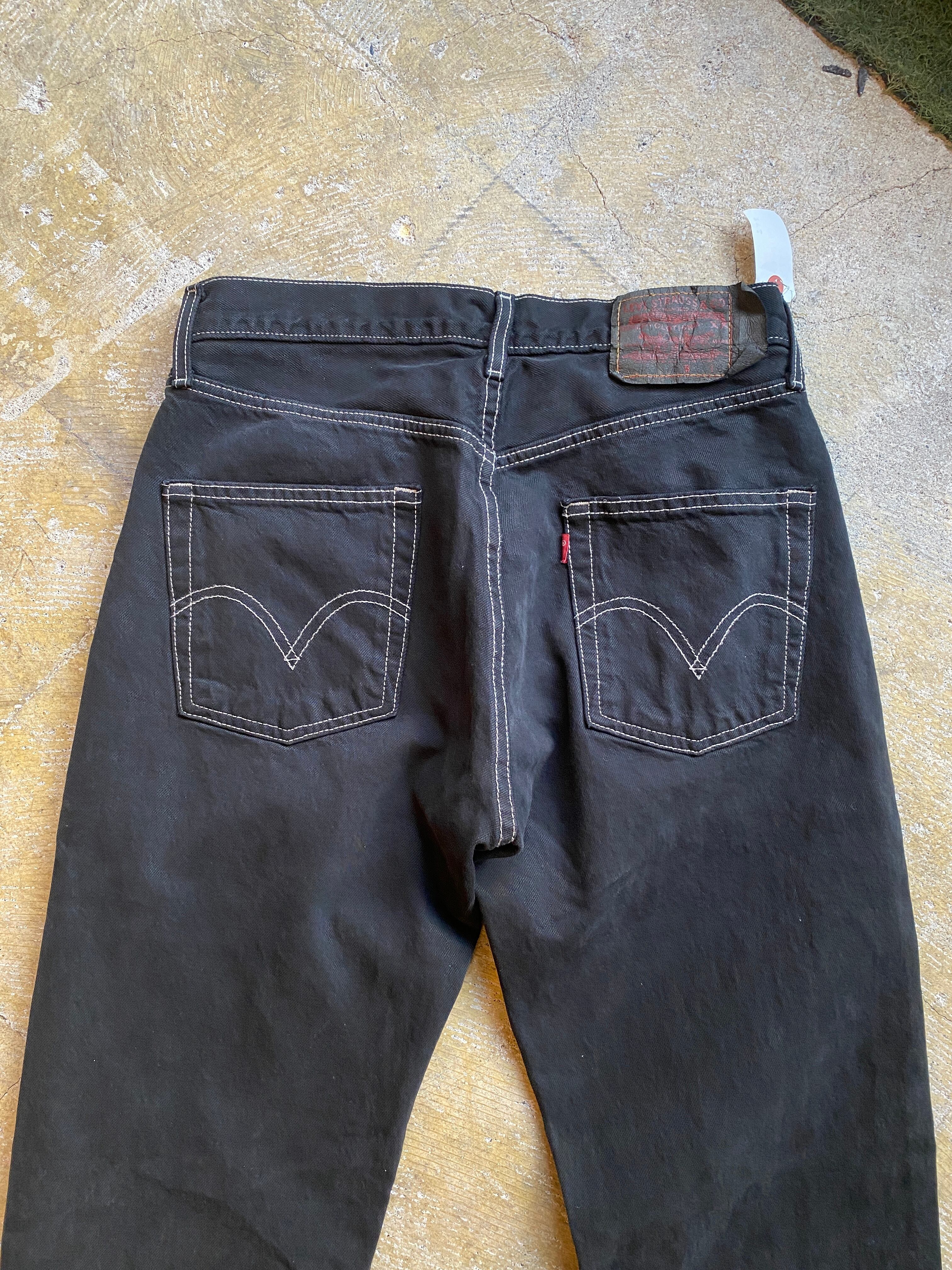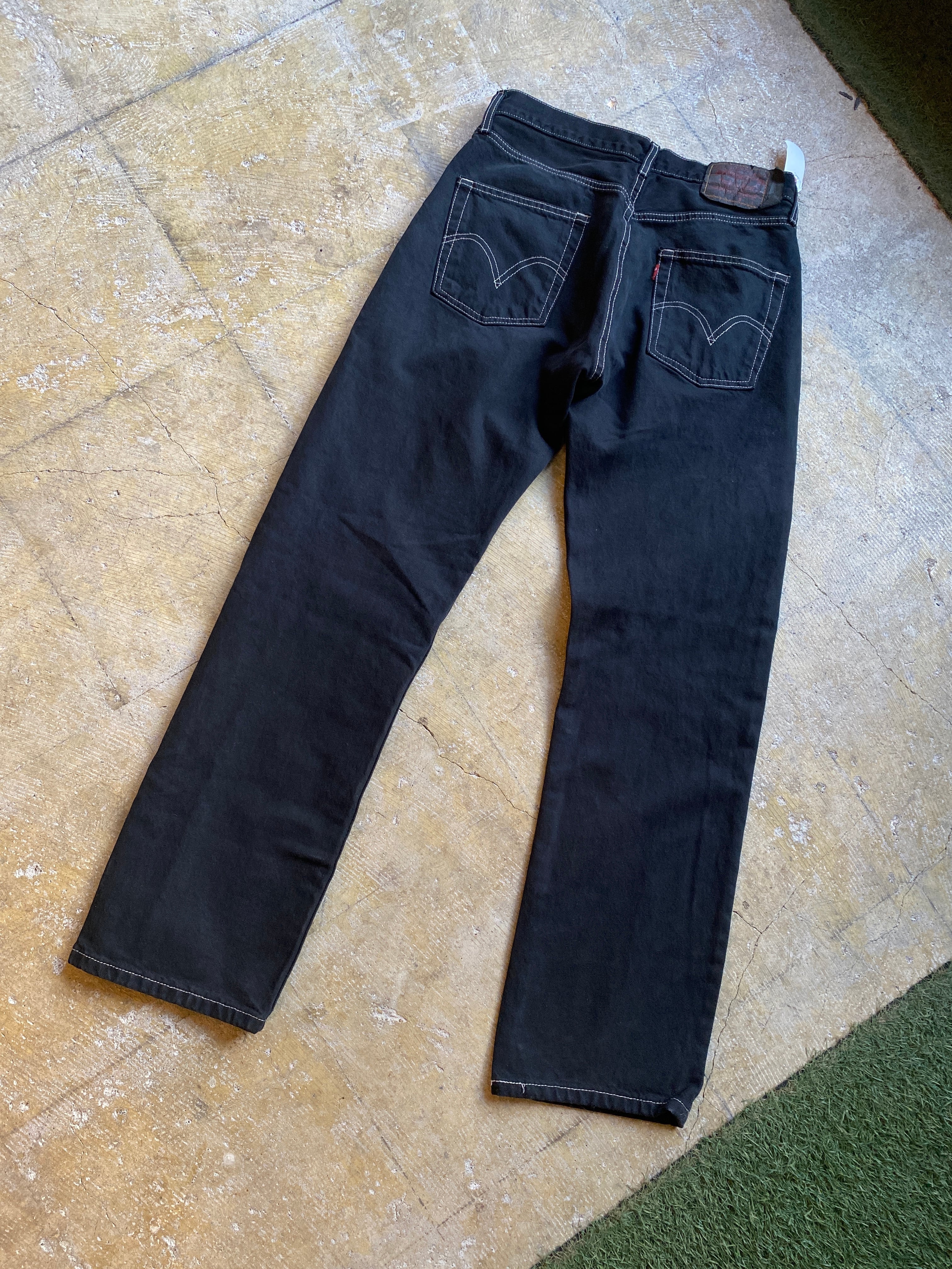 リーバイスの501の後染めのデニムパンツです。W32L32とゴールデンサイズで白のステッチが素敵ですね。後染めならではのデザインですよ。純粋にカッコいいです。ぜひ。
