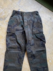 アメリカ軍のウットランドカモの後染めのカーゴパンツです。薄っすらと見えるカモの柄がなんとも素敵ですね。これならカモパンツ履ける方も多いのではないでしょうか?S-Rなのでサイズも◎です。ぜひ。