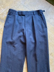 イギリス軍のNo.2のドレストラウザーです。ウールとポリエステルの混合素材は夏以外のシーズンは着用可能ですよ。カラーも何とも言えませんね。股下があまりありませんのでスッキリと履きたい方にオススメです。ぜひ。
