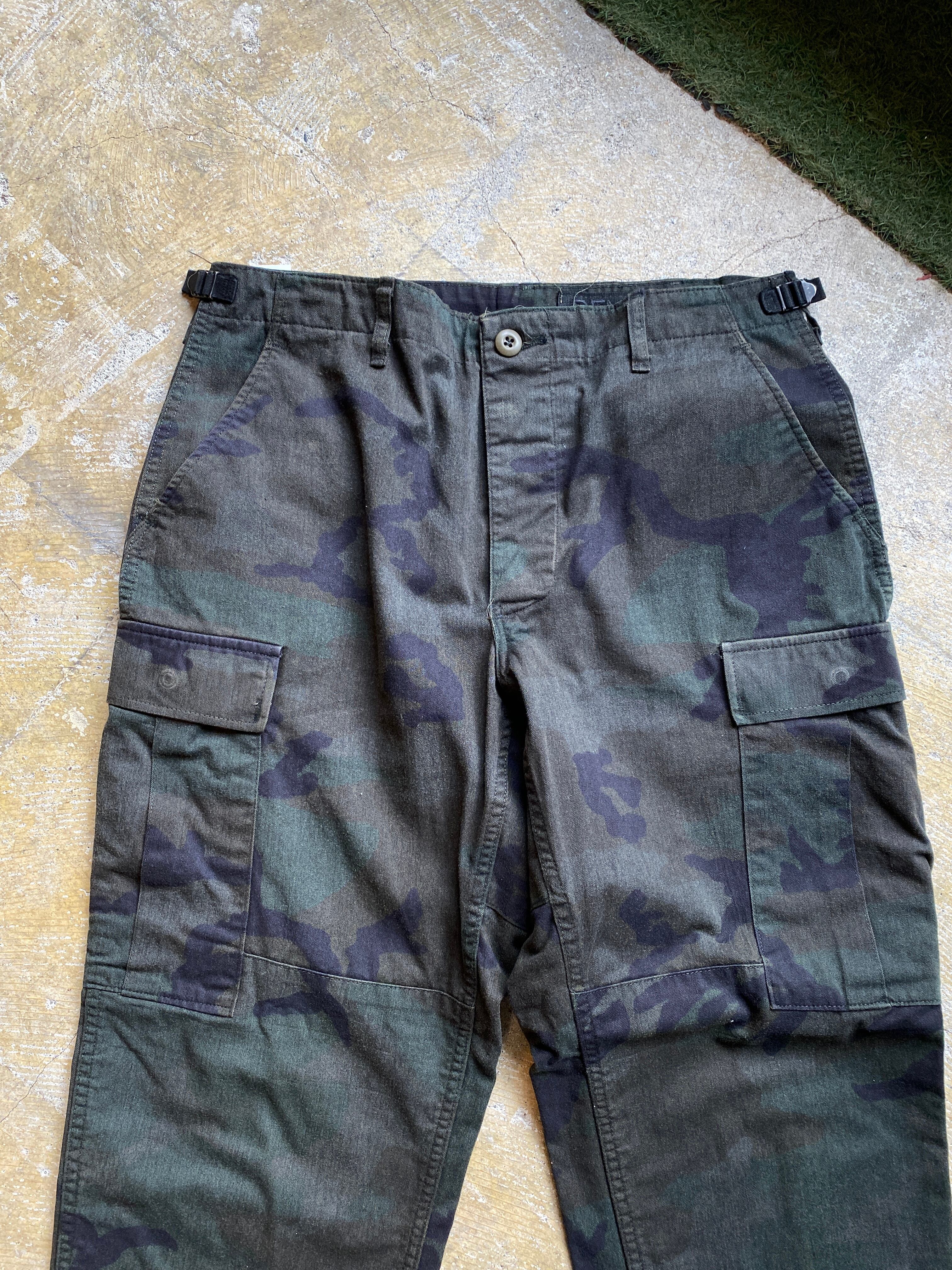アメリカ軍のウットランドカモの後染めのカーゴパンツです。薄っすらと見えるカモの柄がなんとも素敵ですね。これならカモパンツ履ける方も多いのではないでしょうか?こちらは前回ご紹介した物とサイズが違います。こちらM-R表記です。ぜひ。
