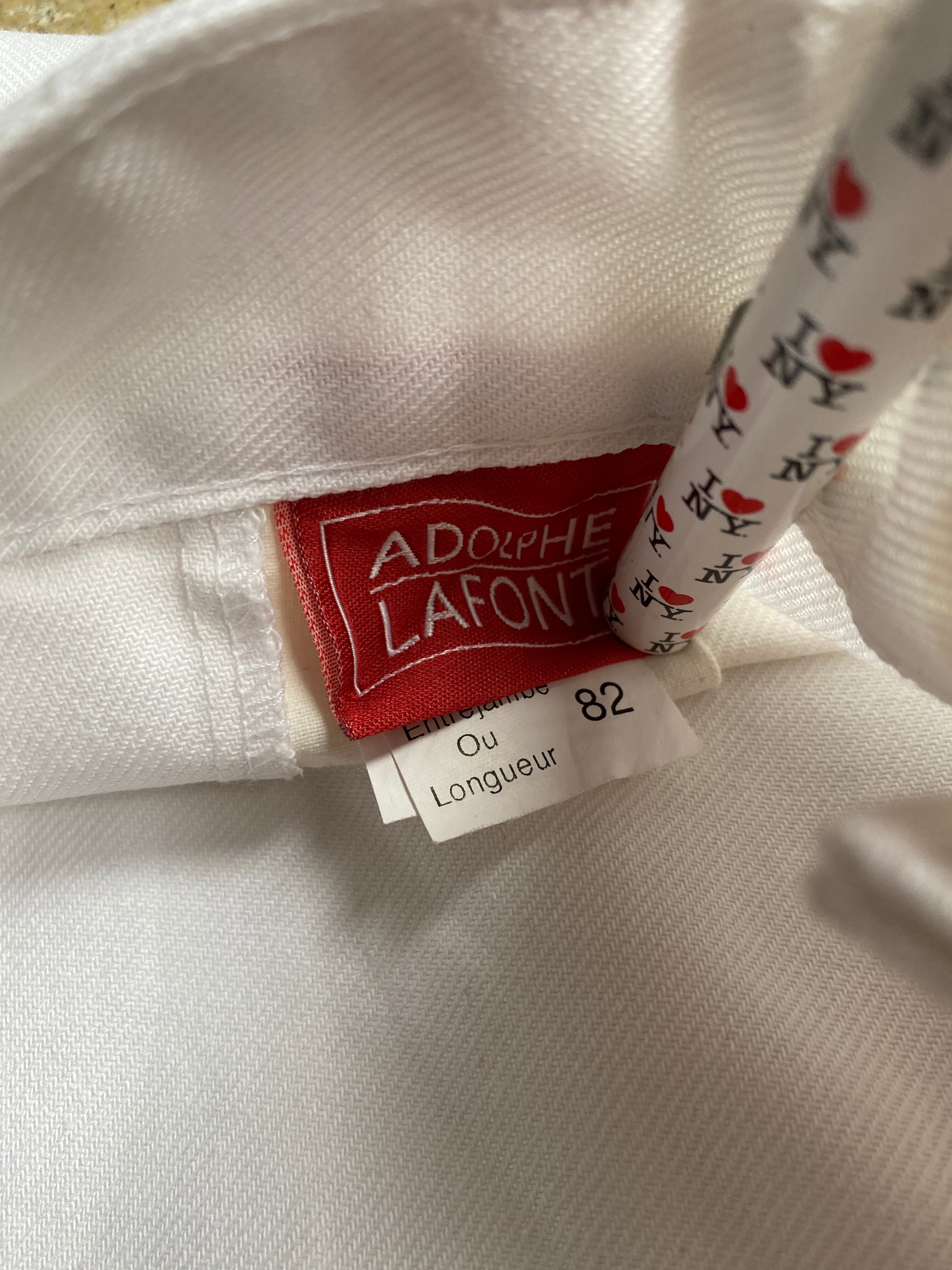 近年物のアドルフのワークパンツです。片ポケットにストレートのモダンなシルエットが素敵ですよ。汚れが結構ありますので画像でご確認ください。個人的に白パンは多少汚れていた方が好きです。ぜひ。