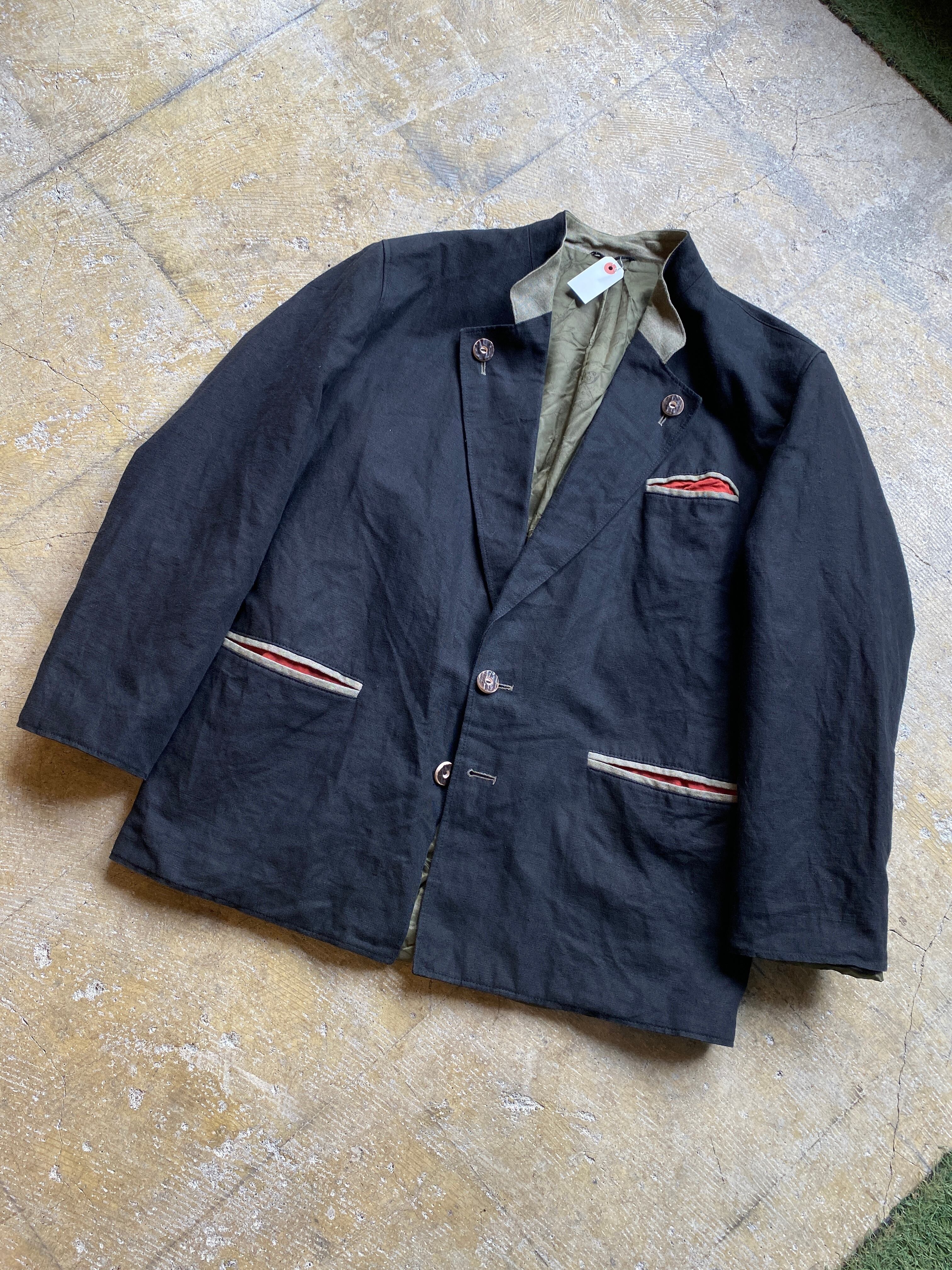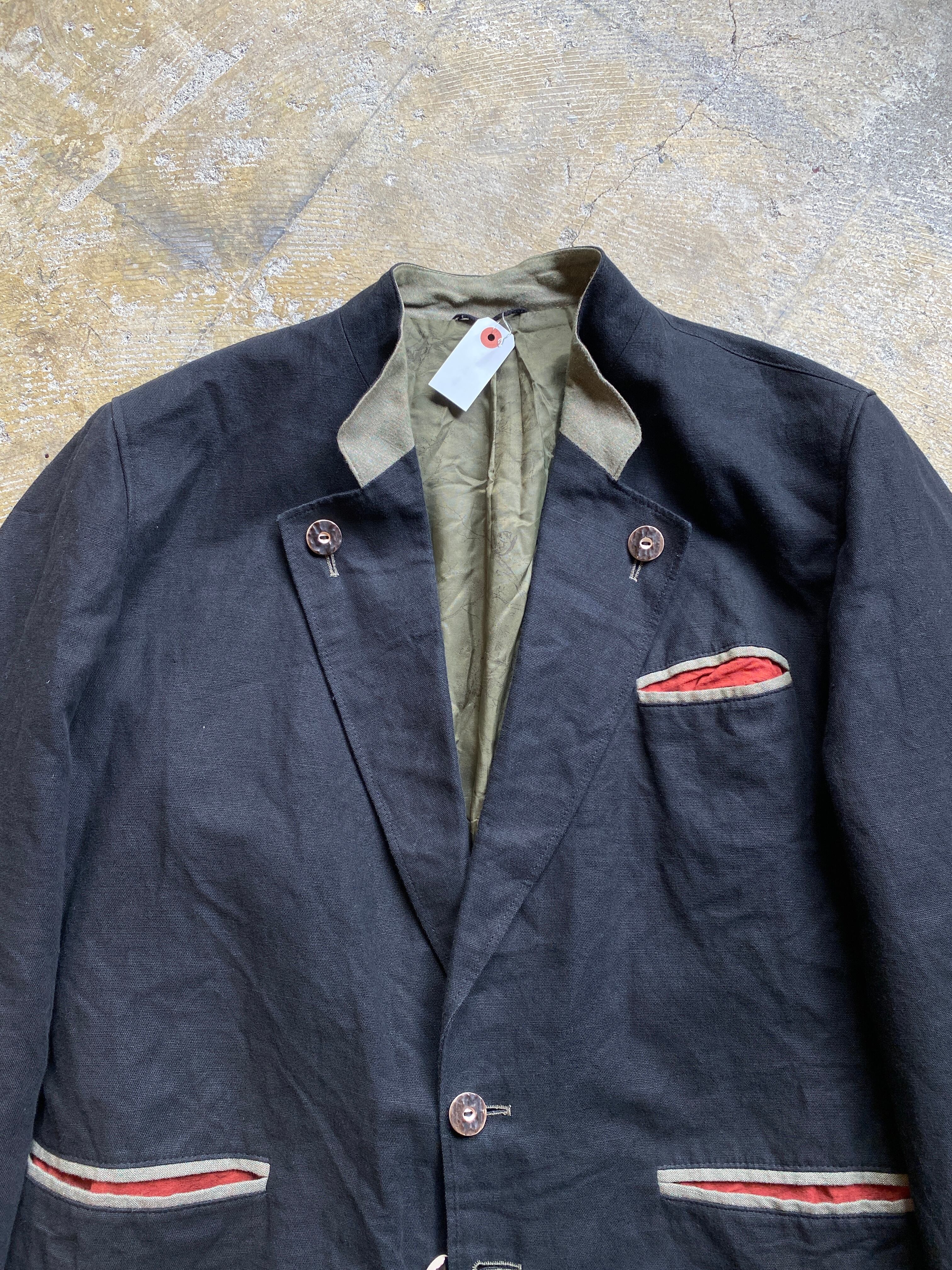 オーストリア製のチロリアンジャケットです。リネンに気の利いたデザインがモダンで素敵ですね。サイズも大きすぎすな感じで◎ですよ。お好きな方ぜひ。