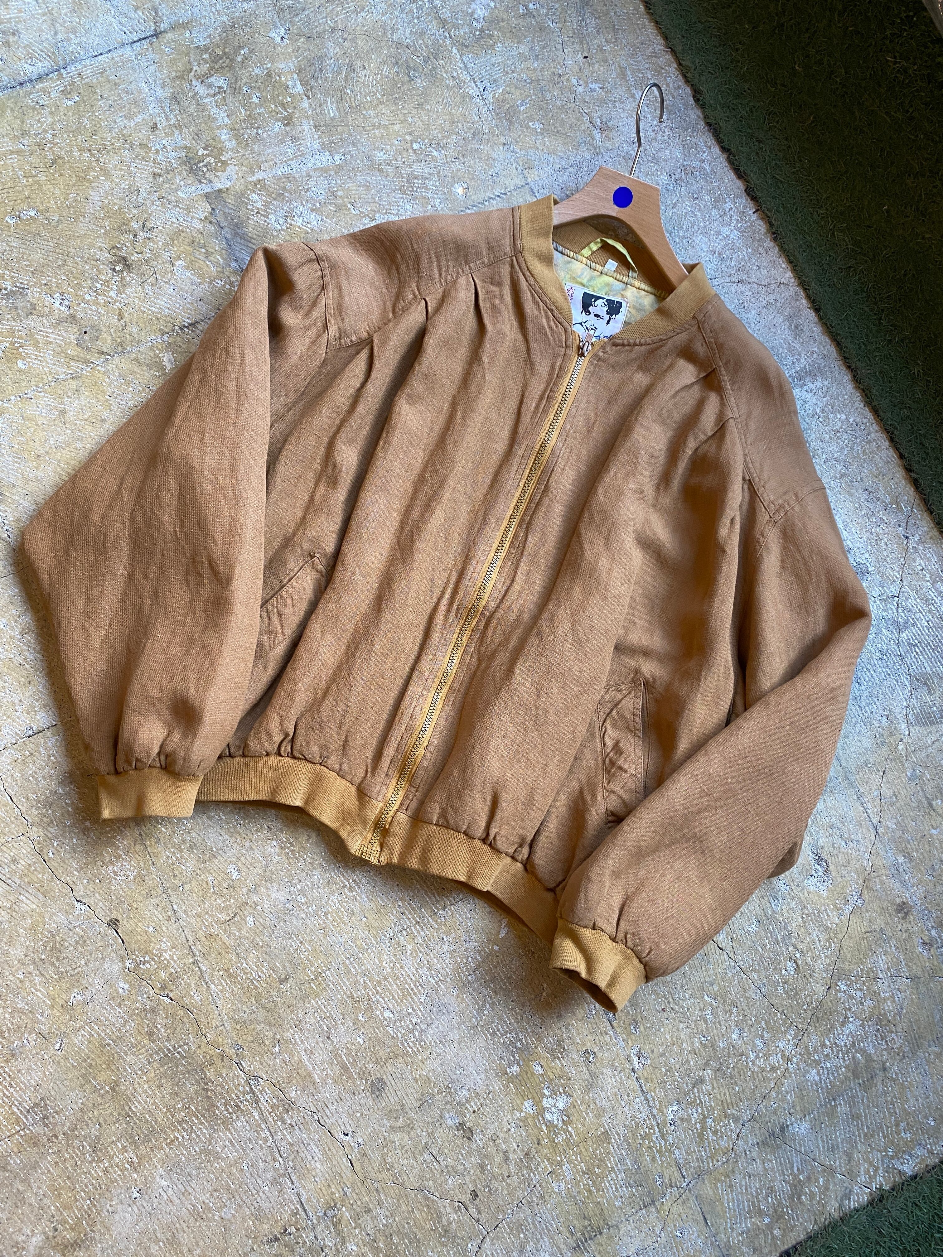 ユーロのリネンジャケットです。身幅広め着丈短めで腕は太めのボンバージャケットです。