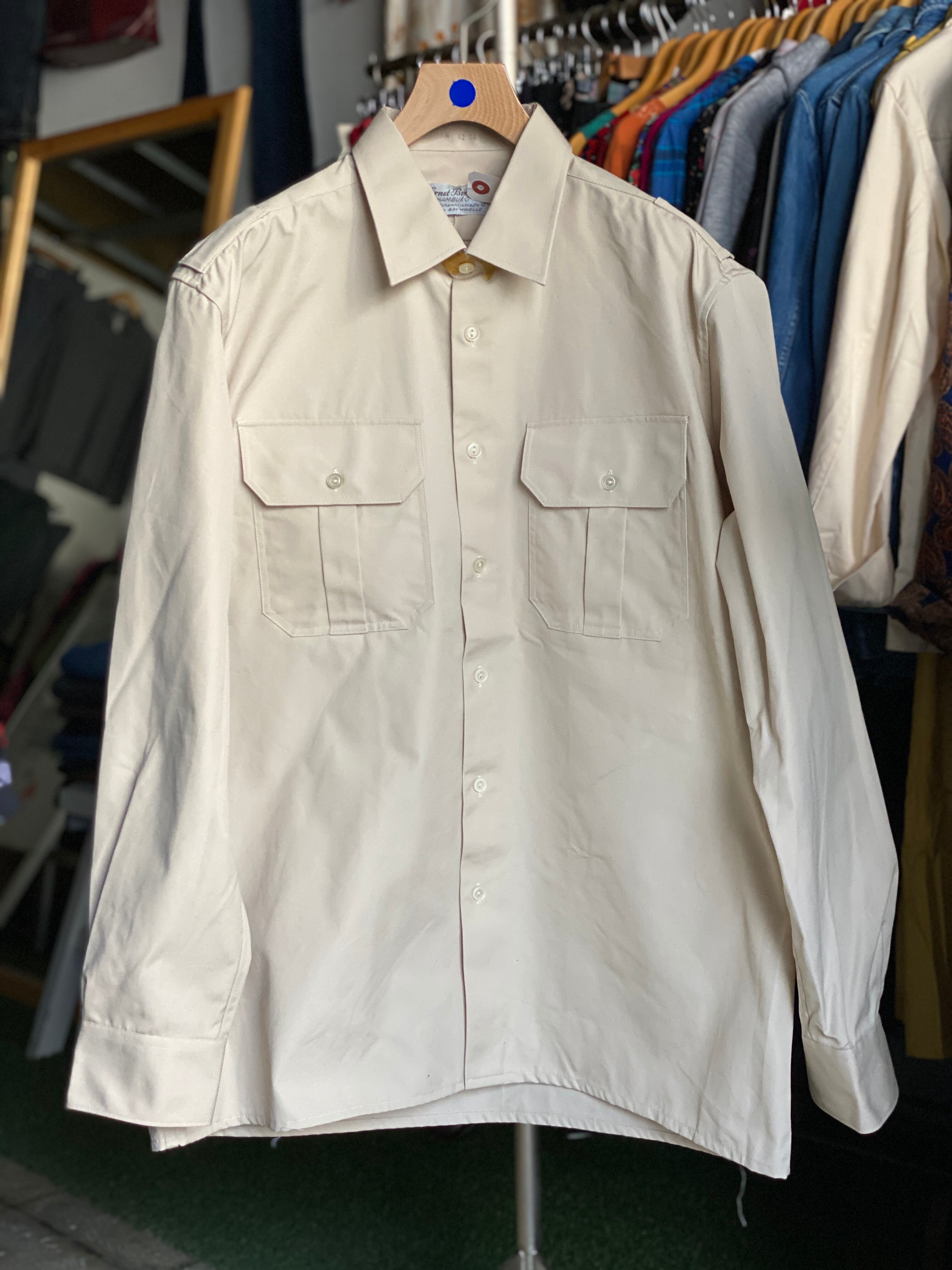 ドイツのデットストックのコットンシャツです。高密度のコットンはベンタイルのような仕上がりですよ。フラップもありディティール満載です。お好きな方はぜひ。