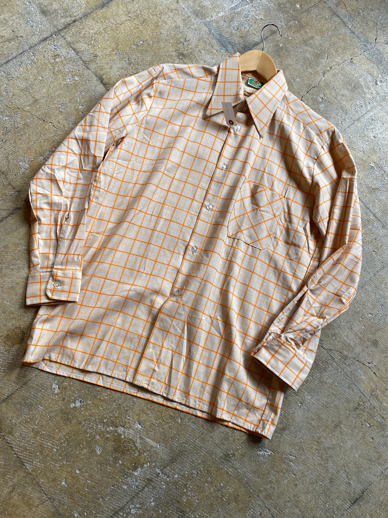 デットストックのドイツのチェックシャツです。70sらしいカラーリングにコットン&ビスコースの生地が◎ですよ。ボックスのシルエットもいいですね。ぜひ。(1つ前のシャツの投稿と同ブランドです。サイズはこちらがワンサイズ上です。)