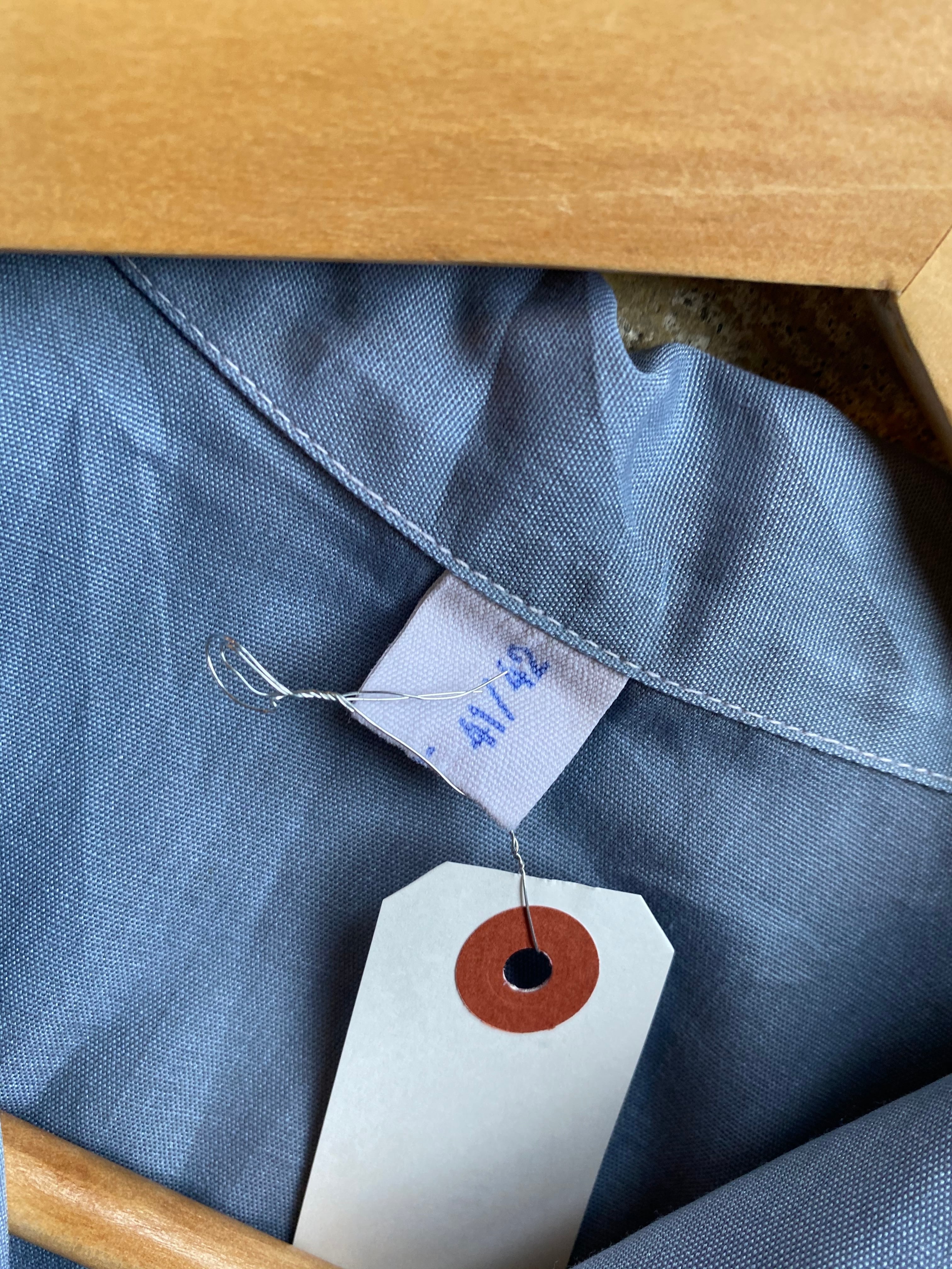 ヨーロッパのシャークカラーシャツです。素敵な色味にシャークカラーの襟が素敵ですね。年々出づらくなっているアイテムですのでお探しの方はぜひ。