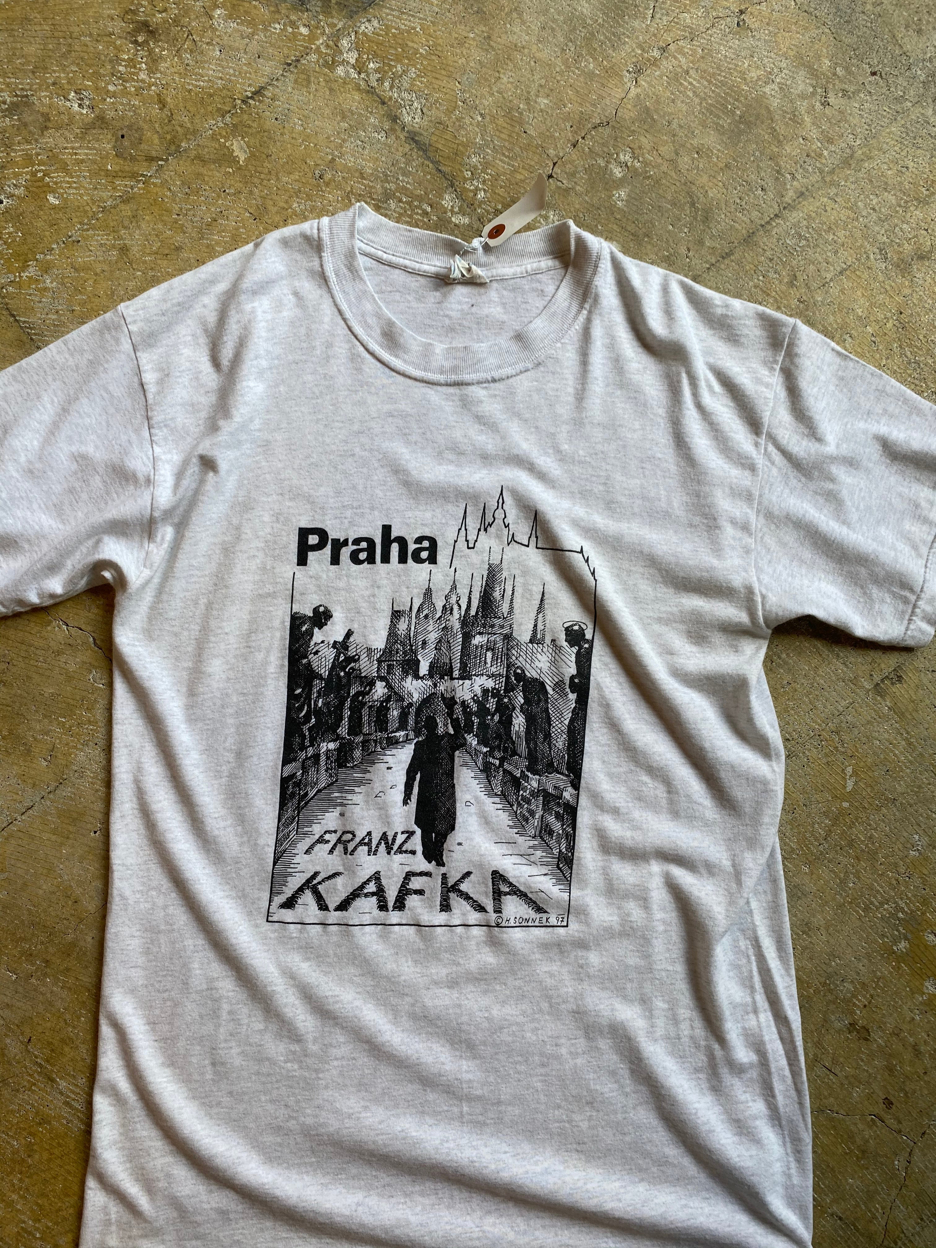 チェコ出身の作家フランツカフカのデザインTシャツです。アートなプリントに薄いグレーのボディが素敵ですね。アートTお探しの方も多いと思います。ぜひ。