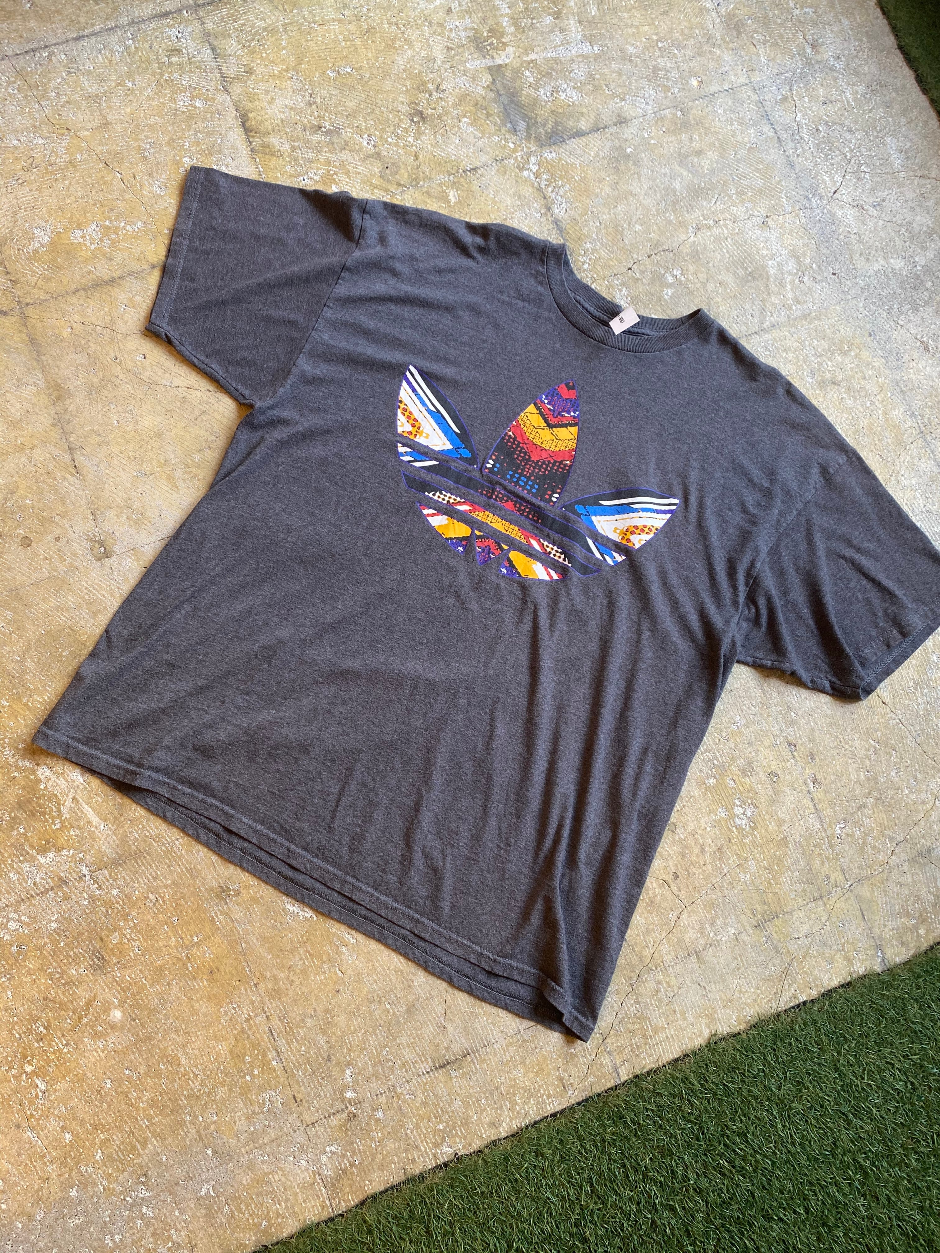 近年物のアディダスのプリントTシャツです。グレーのボディにトレフォイルが映えますね。サイズもゆったりめなのでゆるく着てください。3枚目が実物に近いです。是非。