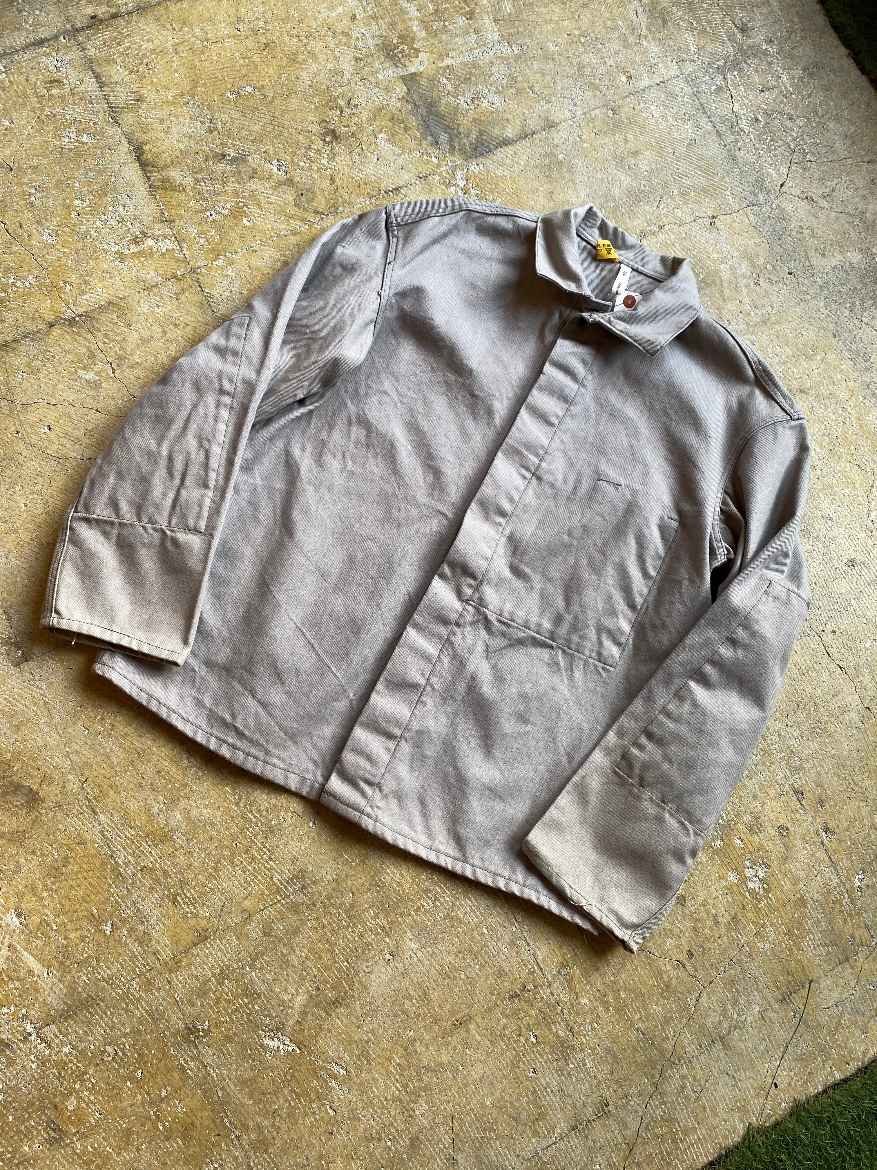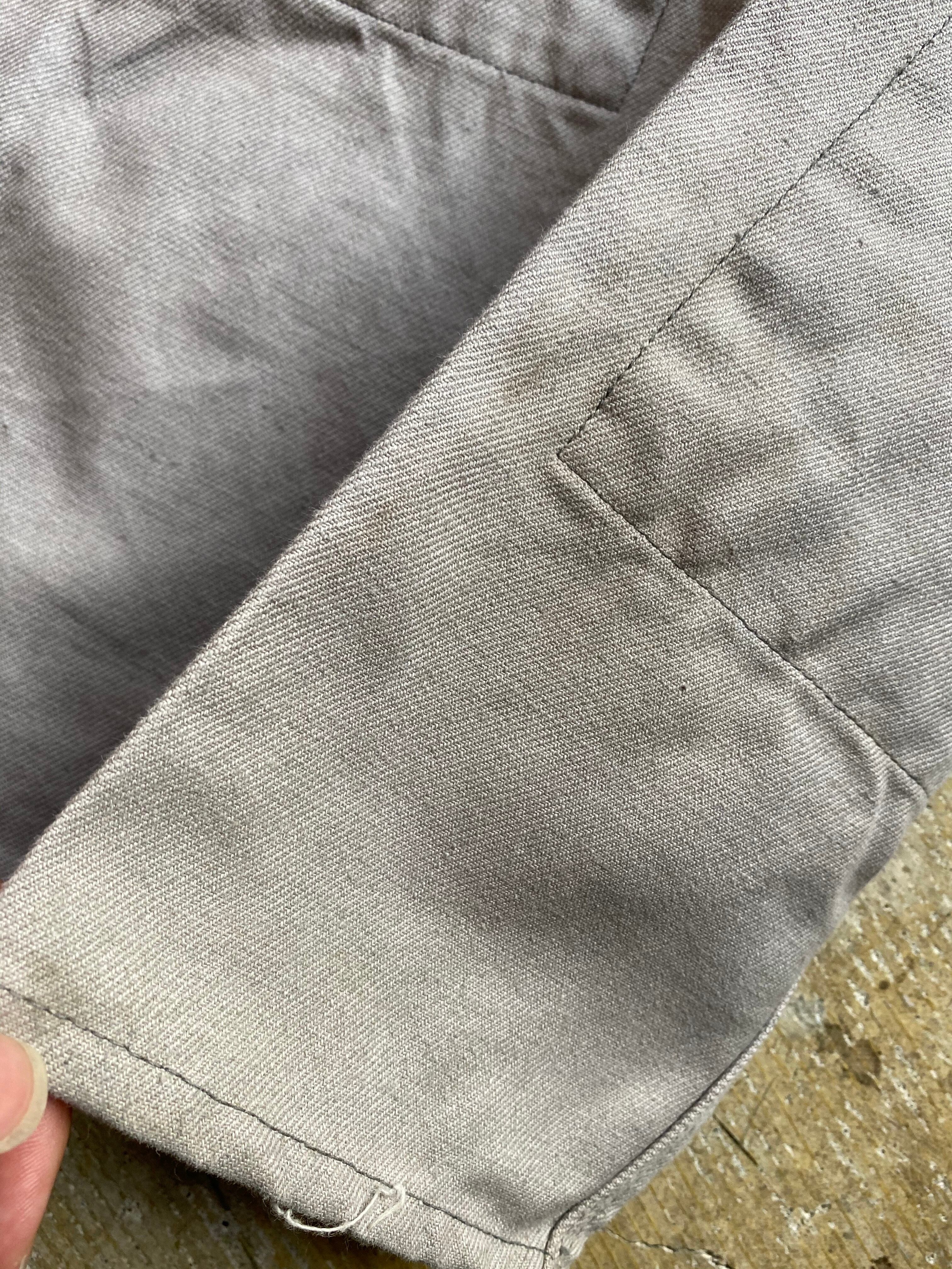 東ドイツのワークジャケットです。こちらはレアな分厚いツイルのコットンジャケットです。胸の内ポケットとエルボーパッチのみのシンプルな作りですが雰囲気ありますよ。1枚目が実物に近いカラーです。ぜひ。