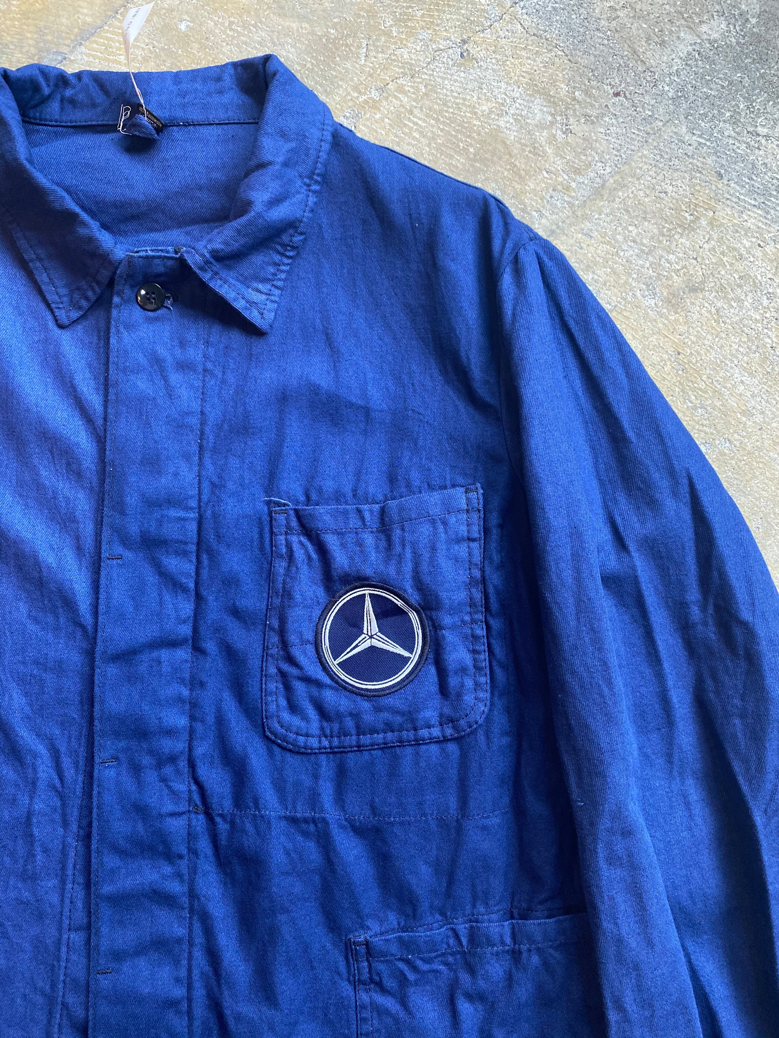 ドイツのベンツのワークジャケットです。ユーロワークでも中々ベンツは出てきません。おそらく作業員用かと思われますが胸のワンポイントが最高ですよ。1枚目が実物に近いカラーです。ぜひ。