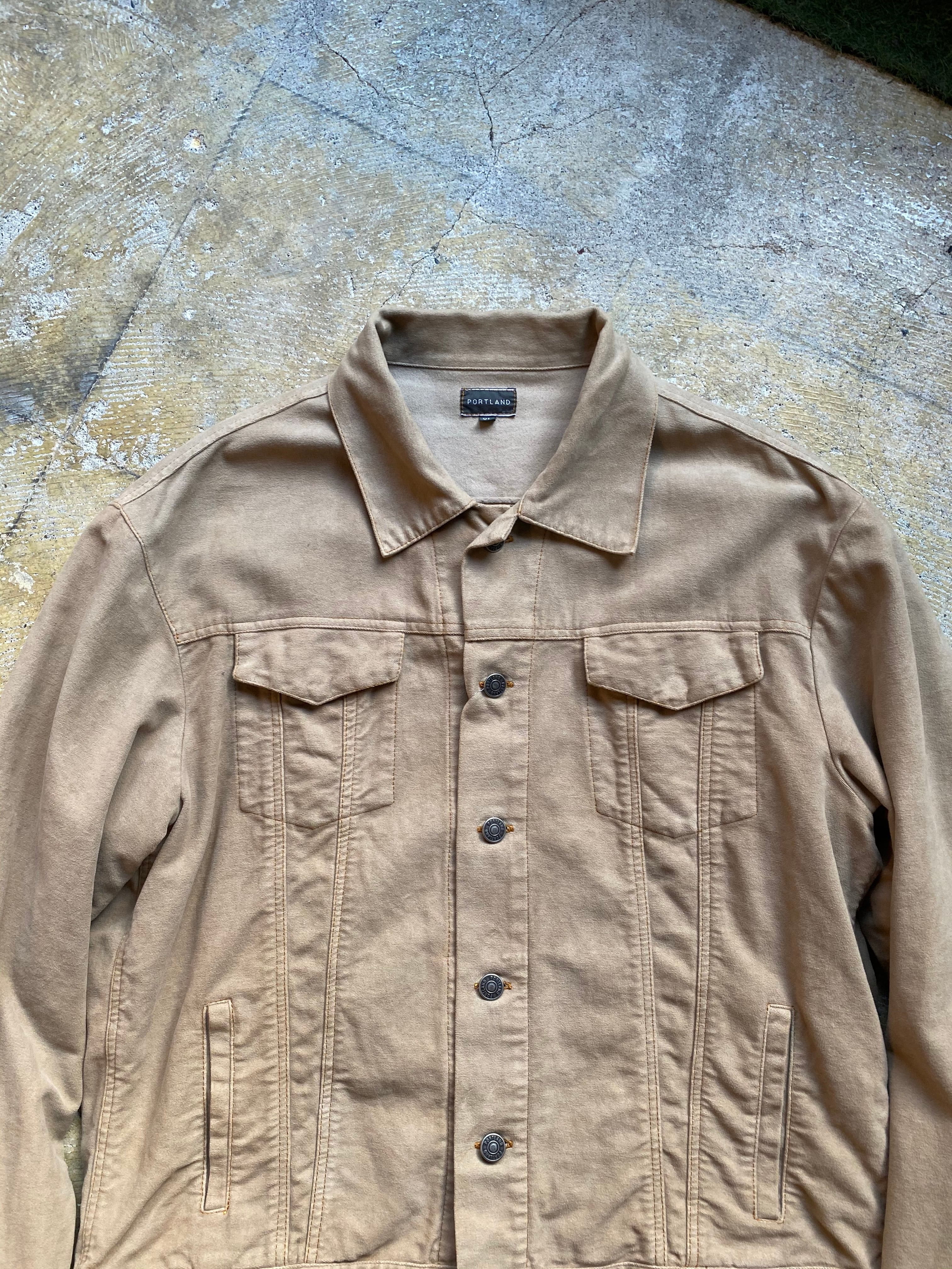 イタリア製のモールスキンジャケットです。イタリアらしいモールスキンで表面に毛羽立ちがあり着心地抜群です。サイズ表記XLですがL程度です。3枚目の色味が実物に近いです。ぜひ。
