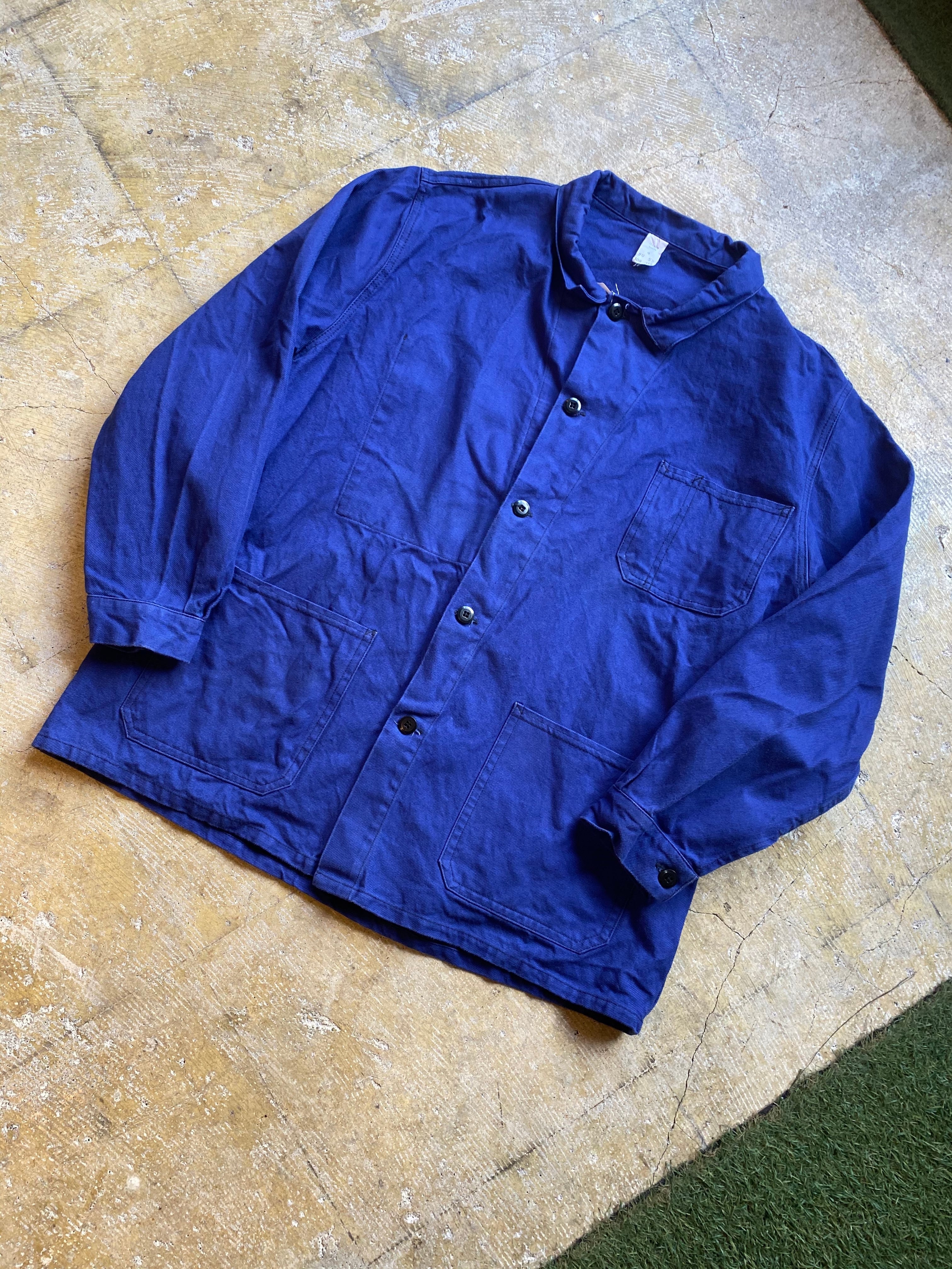 フランスのコットンワークジャケットです。インクブルーの綺麗な色味にビックサイズが良いですね。ペン差しのディティールなど凝った作りも◎です。3枚目が実物に近いカラーとなっております。ぜひ。