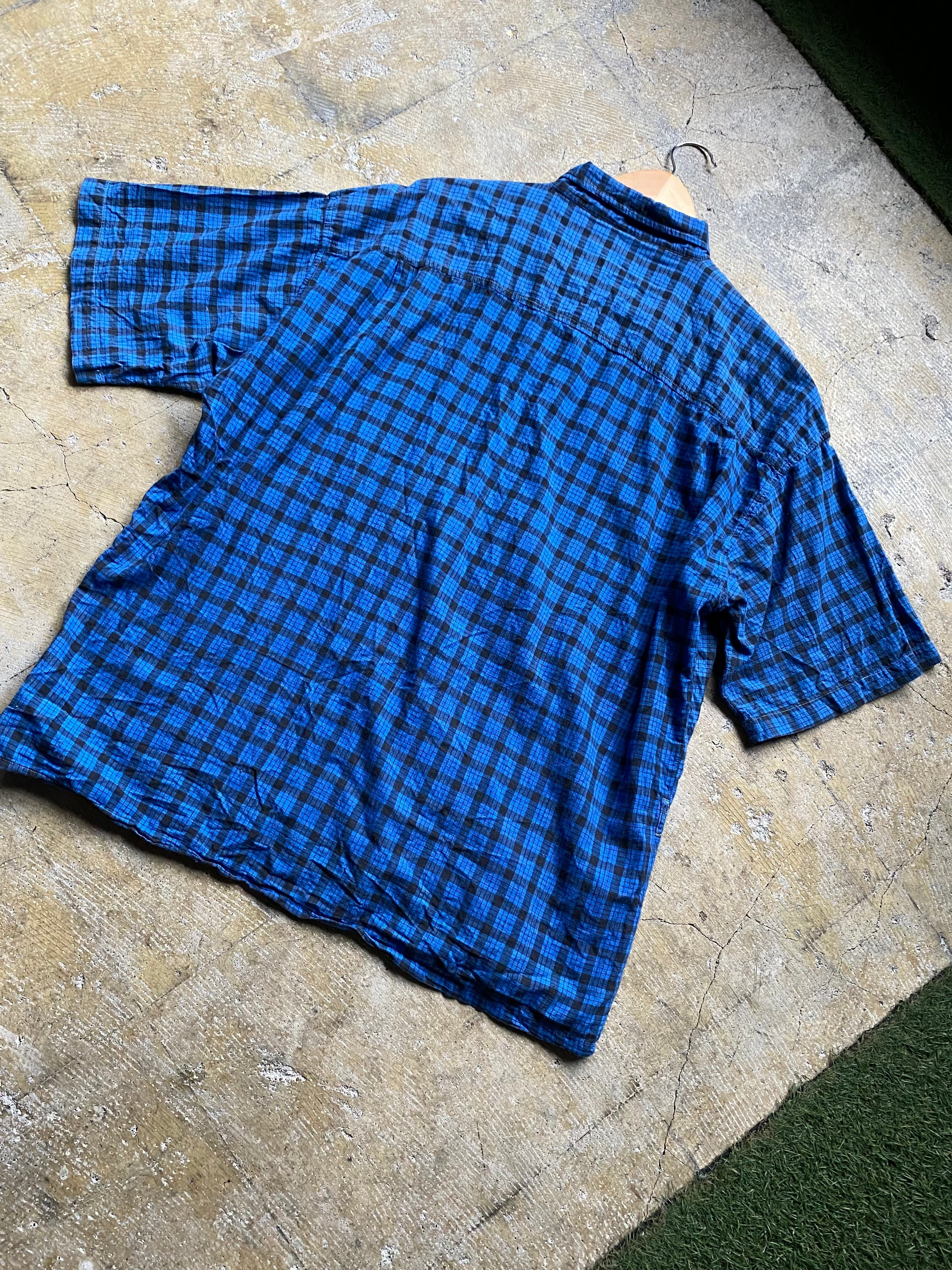 ユーロデザインチェックシャツです。青ベースで色々なスタイル使いやすく、生地も程よい厚みで着心地抜群です。3枚目が実物に近いカラーです。ぜひ。