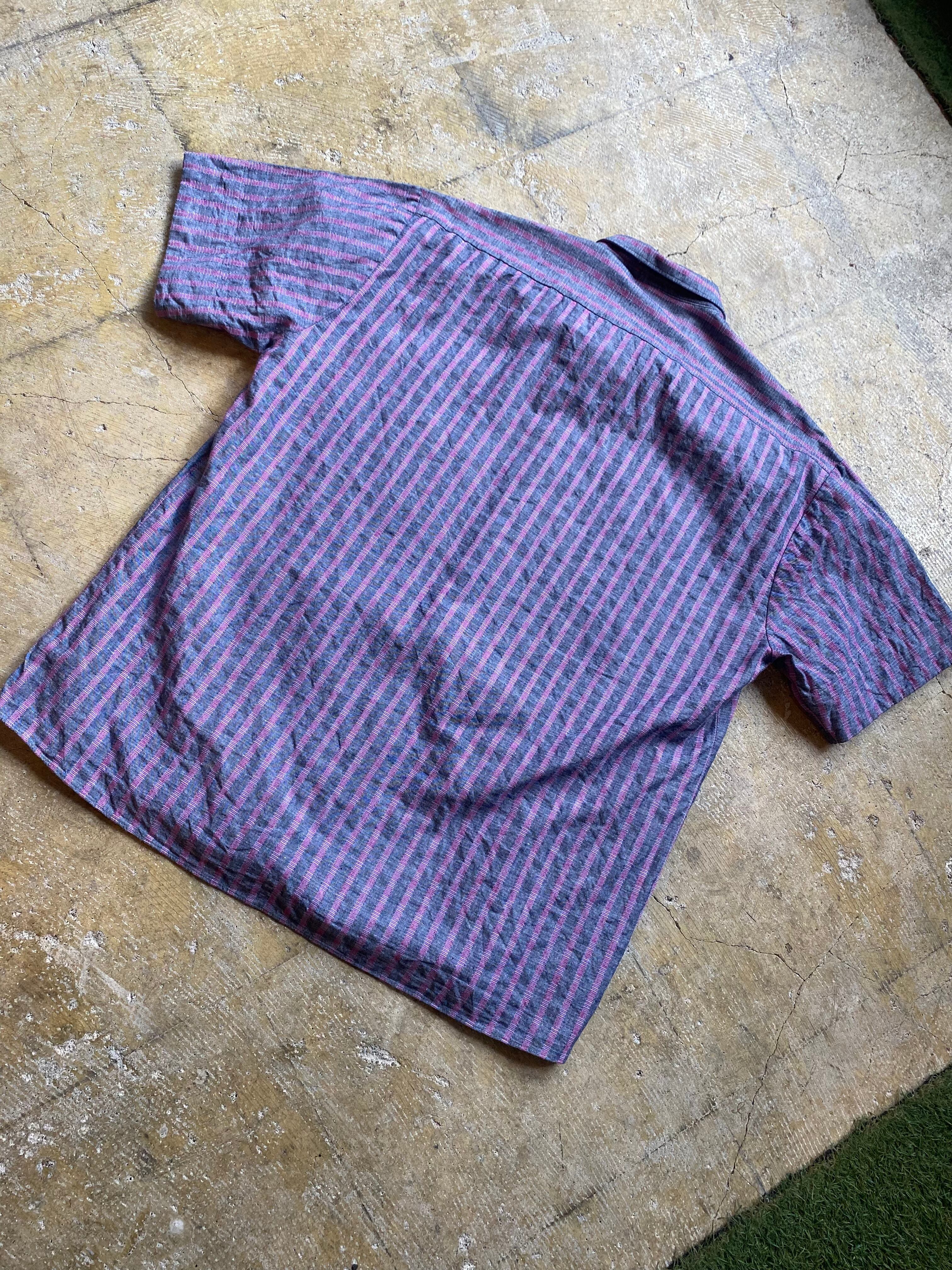 ヨーロッパのデザインコットンシャツです。素敵なストライプにポケットが印象的ですね。3枚目実物に近いカラーです。ぜひ。