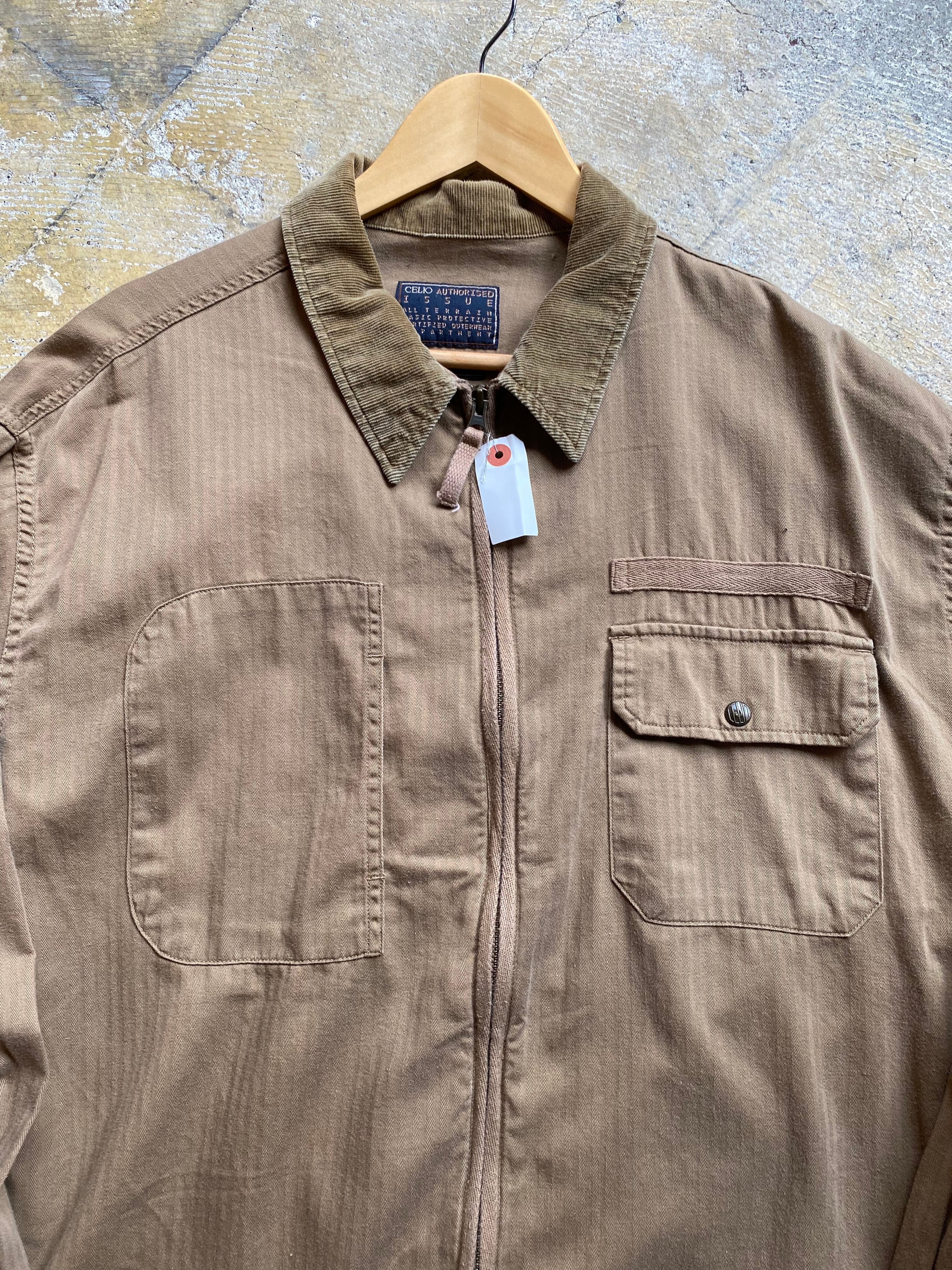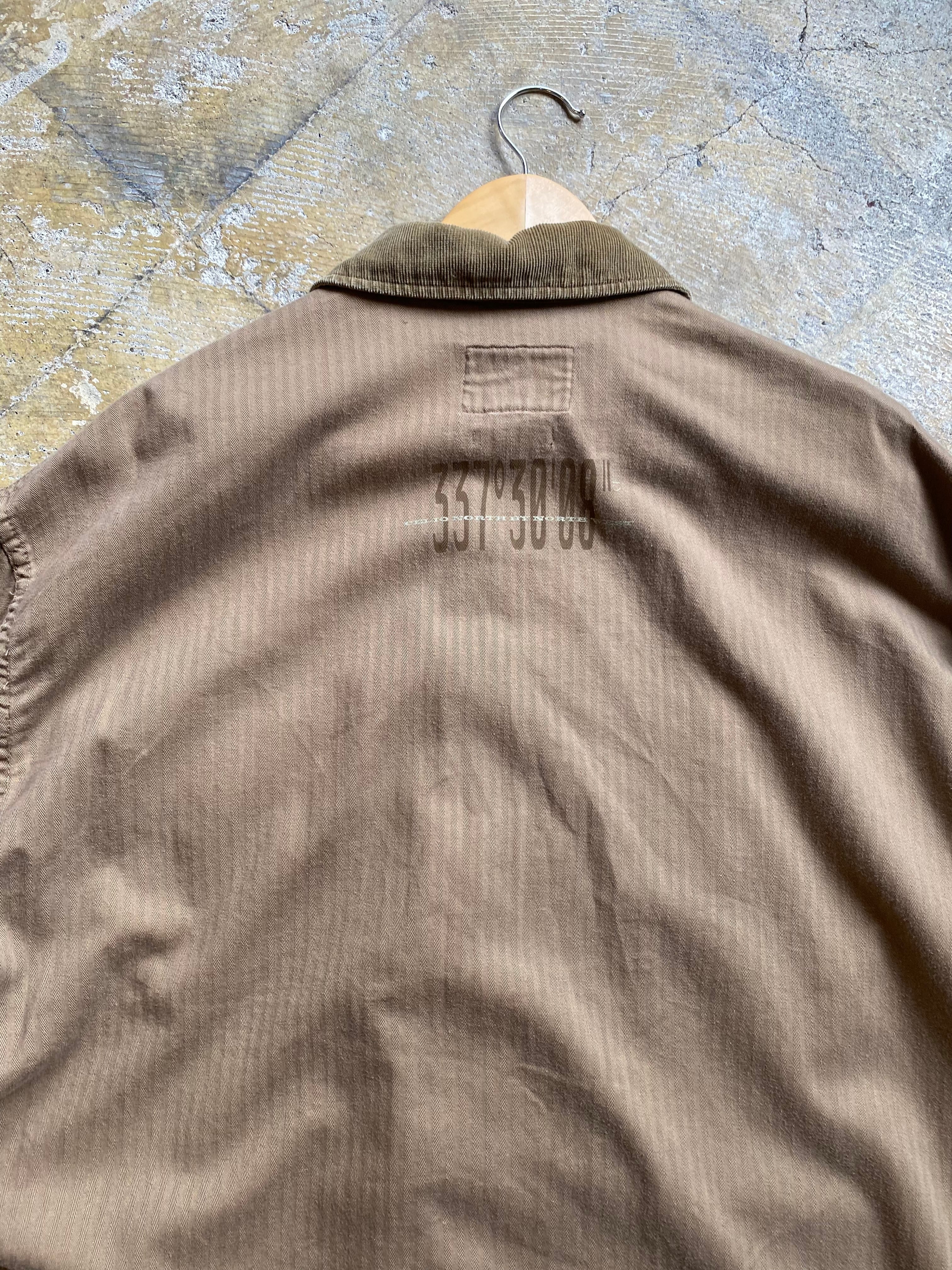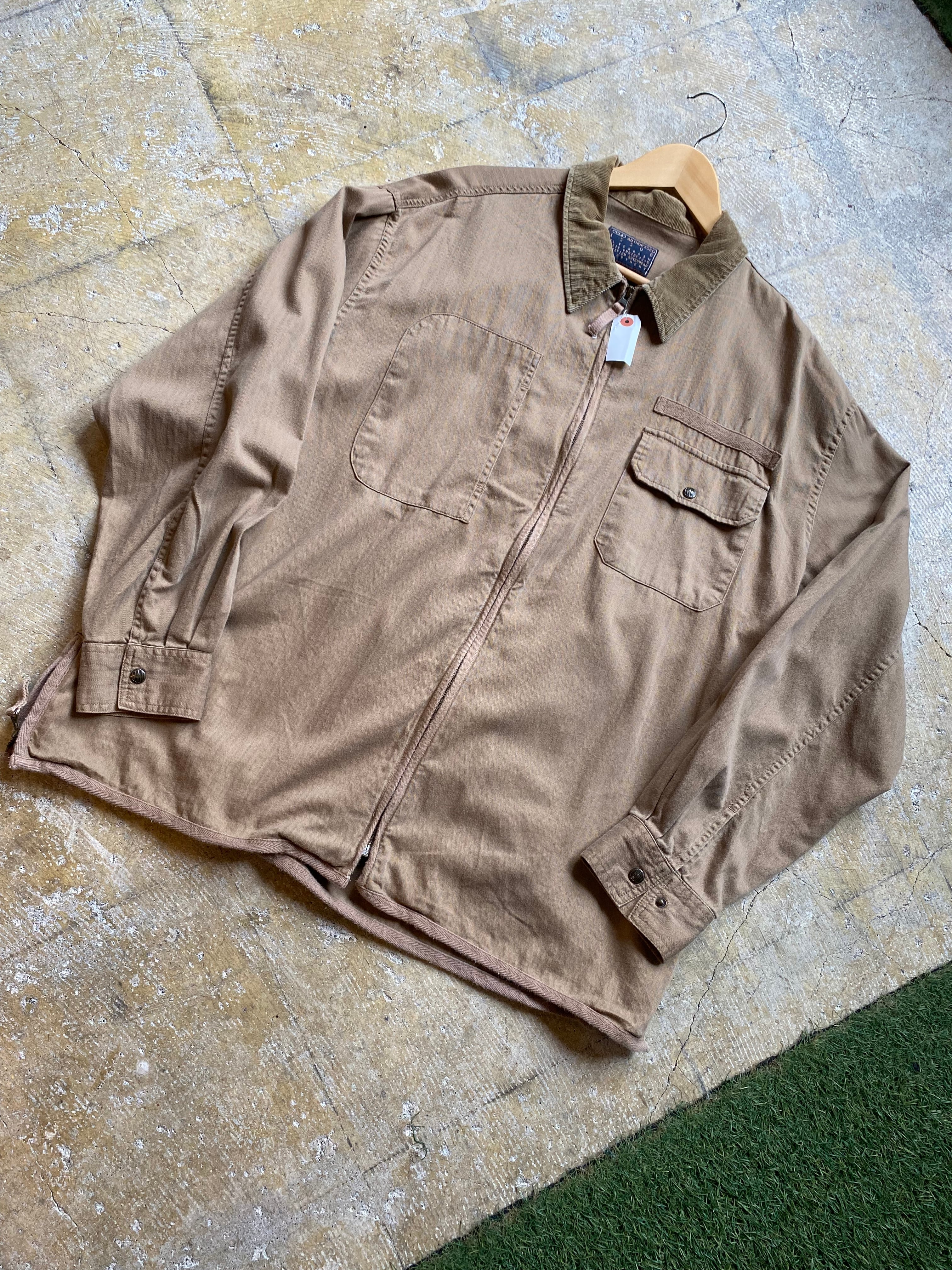 ワークをサンプリングしたデザインコットンシャツジャケットです。シャツ生地なのでそれほど厚くなくビックサイズがいいゆるさを演出してくれますよ。3枚目が実物に近いカラーです。