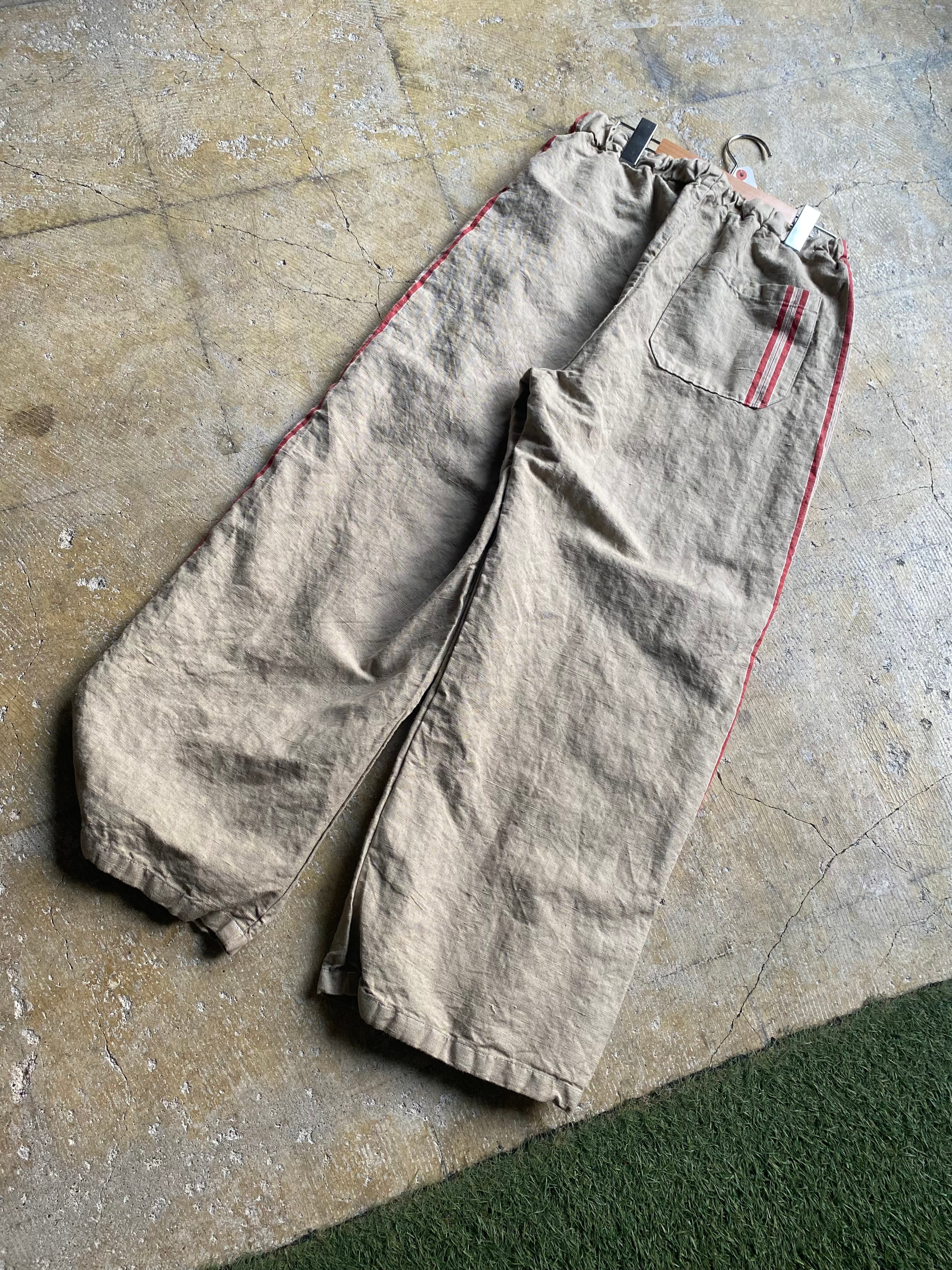 マングルクロスというヨーロッパのアンティークのリネン素材を使用したリメイクのイージーパンツです。シルエットはズドンと太く古いリネンの生地が着心地抜群です。ぜひ。