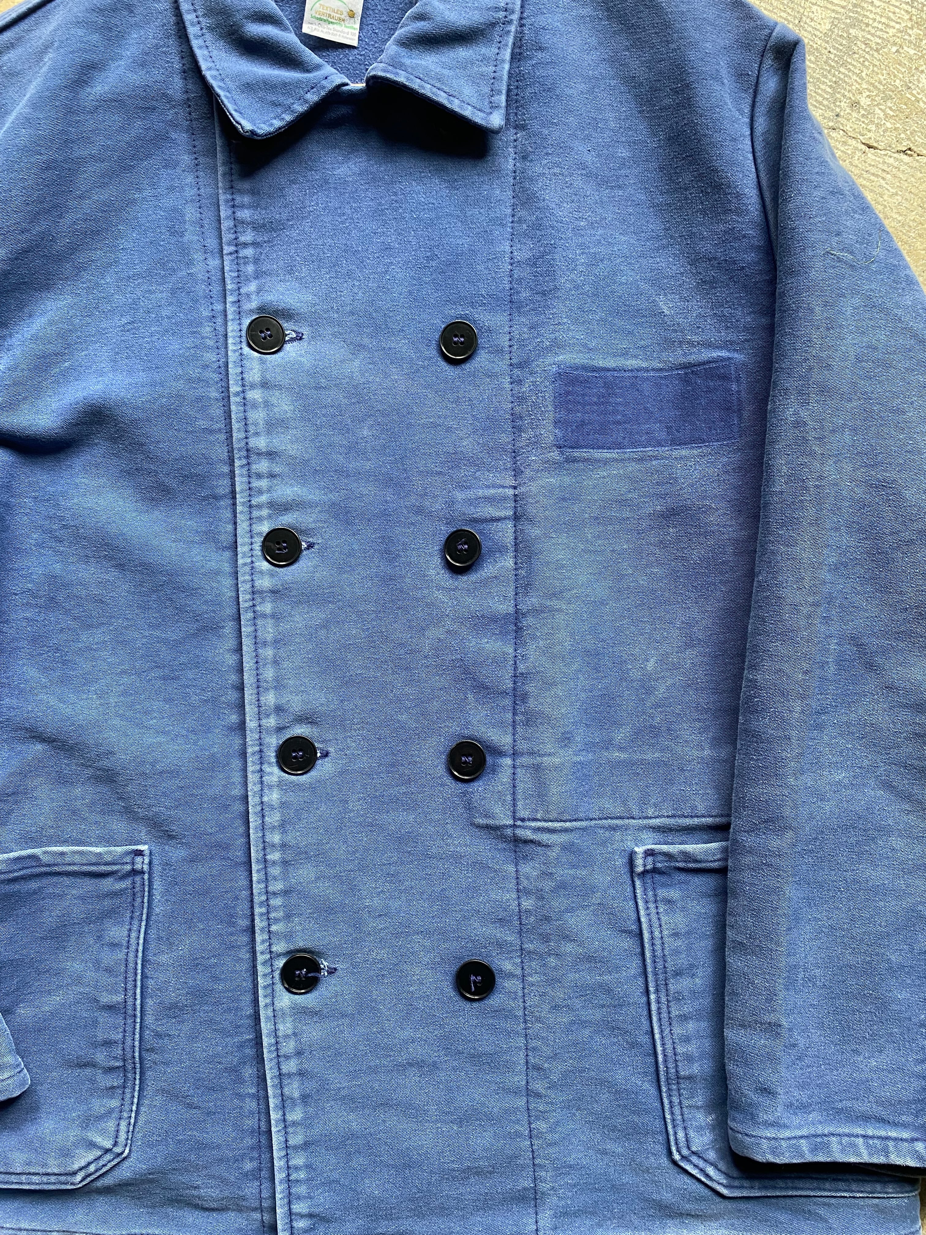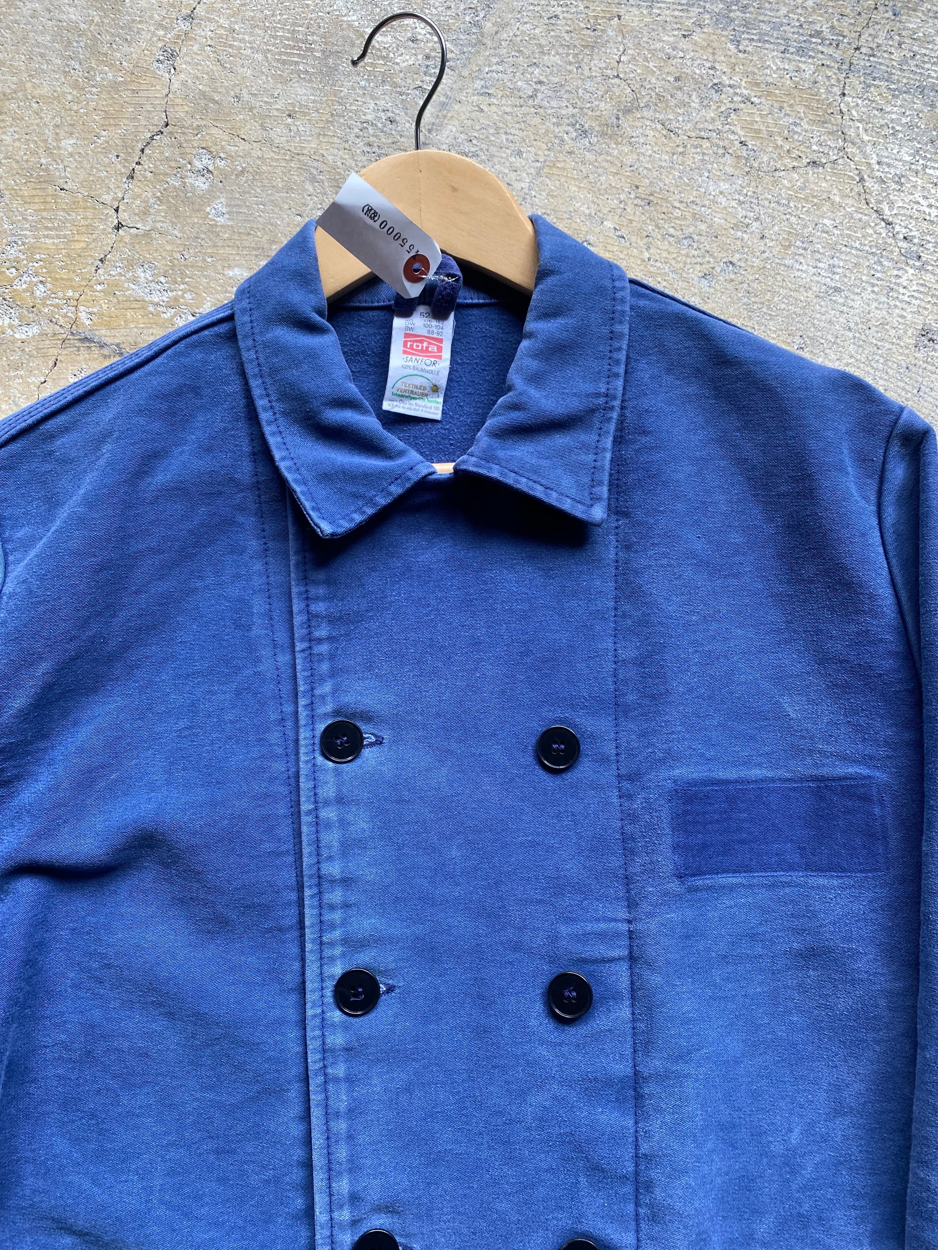 ドイツのエレファントスキンのダブルのワークジャケットです。ただでさえ珍しいダブル仕様に胸と後ろにワッペンが付いてあったであろう2トーンの仕様がオシャレすぎますね。お探しの方この機会にいかがでしょう?2枚目が実物に近いカラーです。